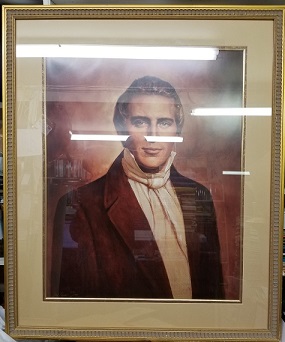 Nicley matted and framed with glass front; the frame has very slight chips; no major damage. Our scan actually shows some glare from the lights, but this is a very nice piece of art. Joseph Smith Jr., the Prophet.