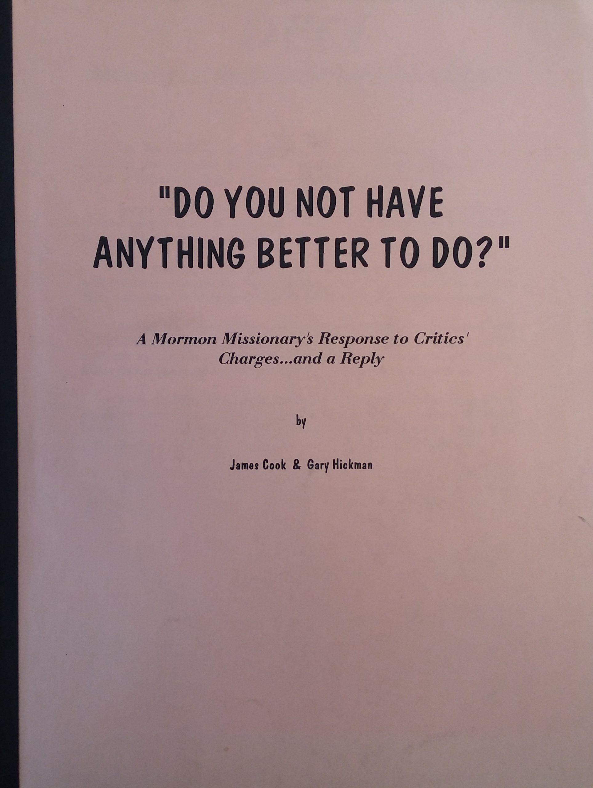 “Do You Not Have Anything Better to Do?” A Mormon Missionary’s Response to Critics’ Charges… And a Reply – James Cook & Gary Hickman