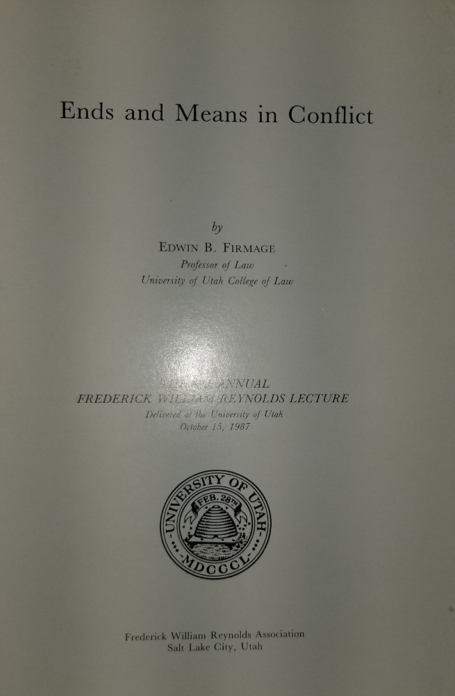 Ends and Means in Conflict ~ Edwin B. Firmage ~ 49th Annual Frederick William Reynolds Lecture