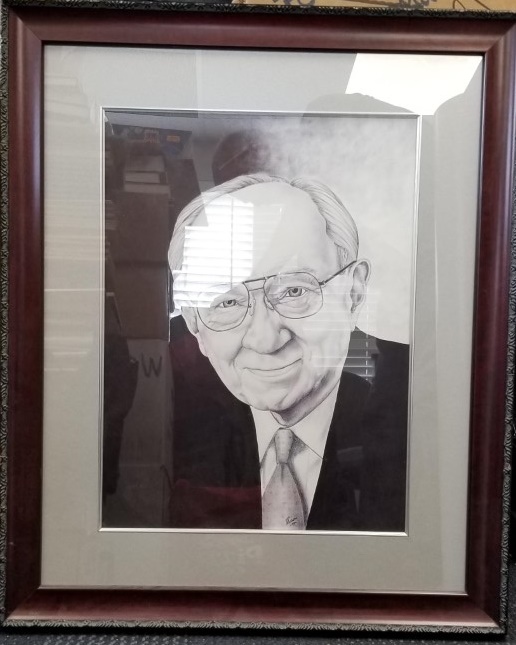 Framed Print of Artwork on Gordon B. Hinckley — Print Measures 15″ x 20″ not counting the matting and framing