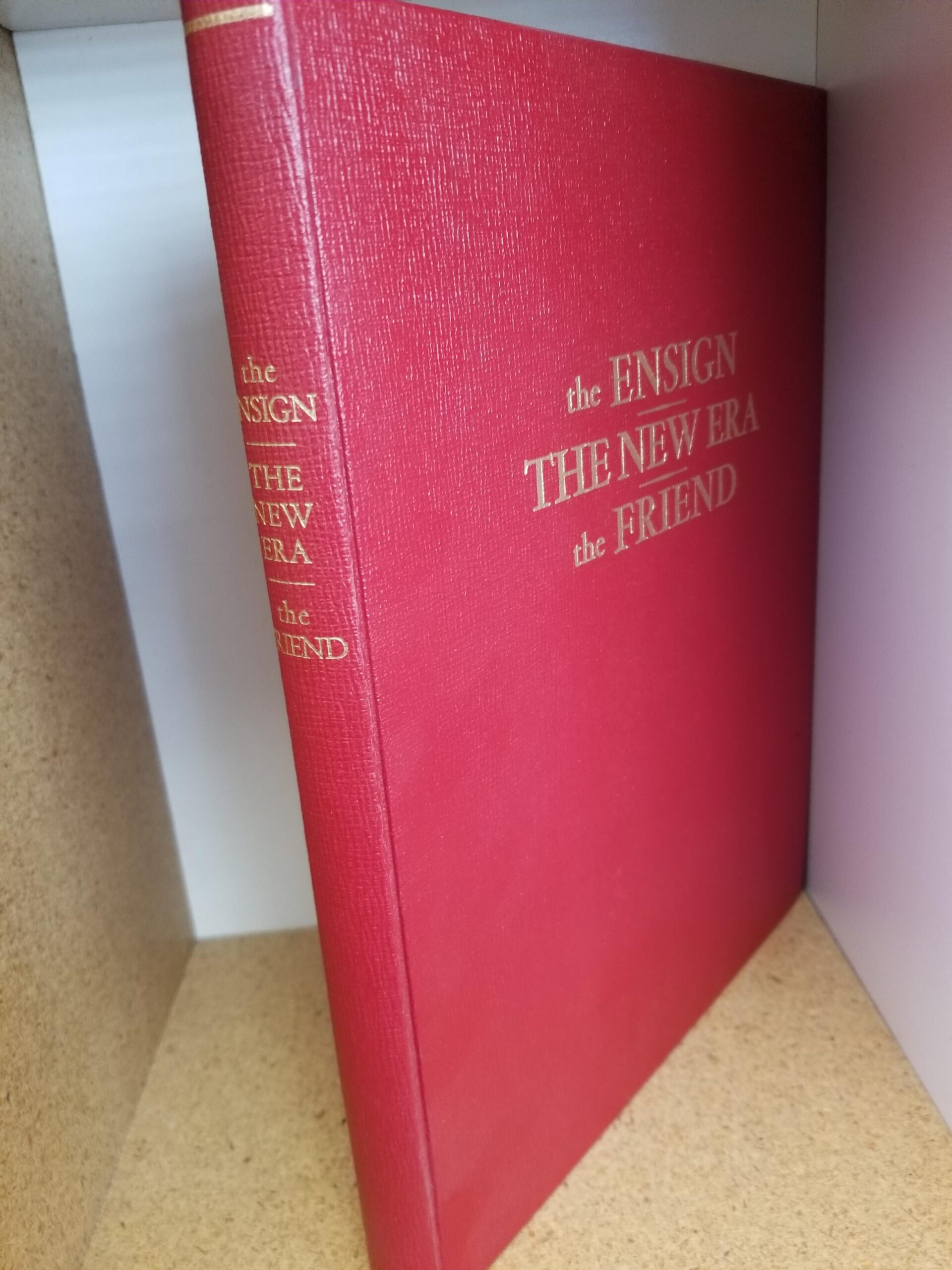 Larger size red hardcover; bound together are the first edition magazines of all three of these Mormon magazines; which all started in January 1971; nicely bound together in a red hardcover volume.