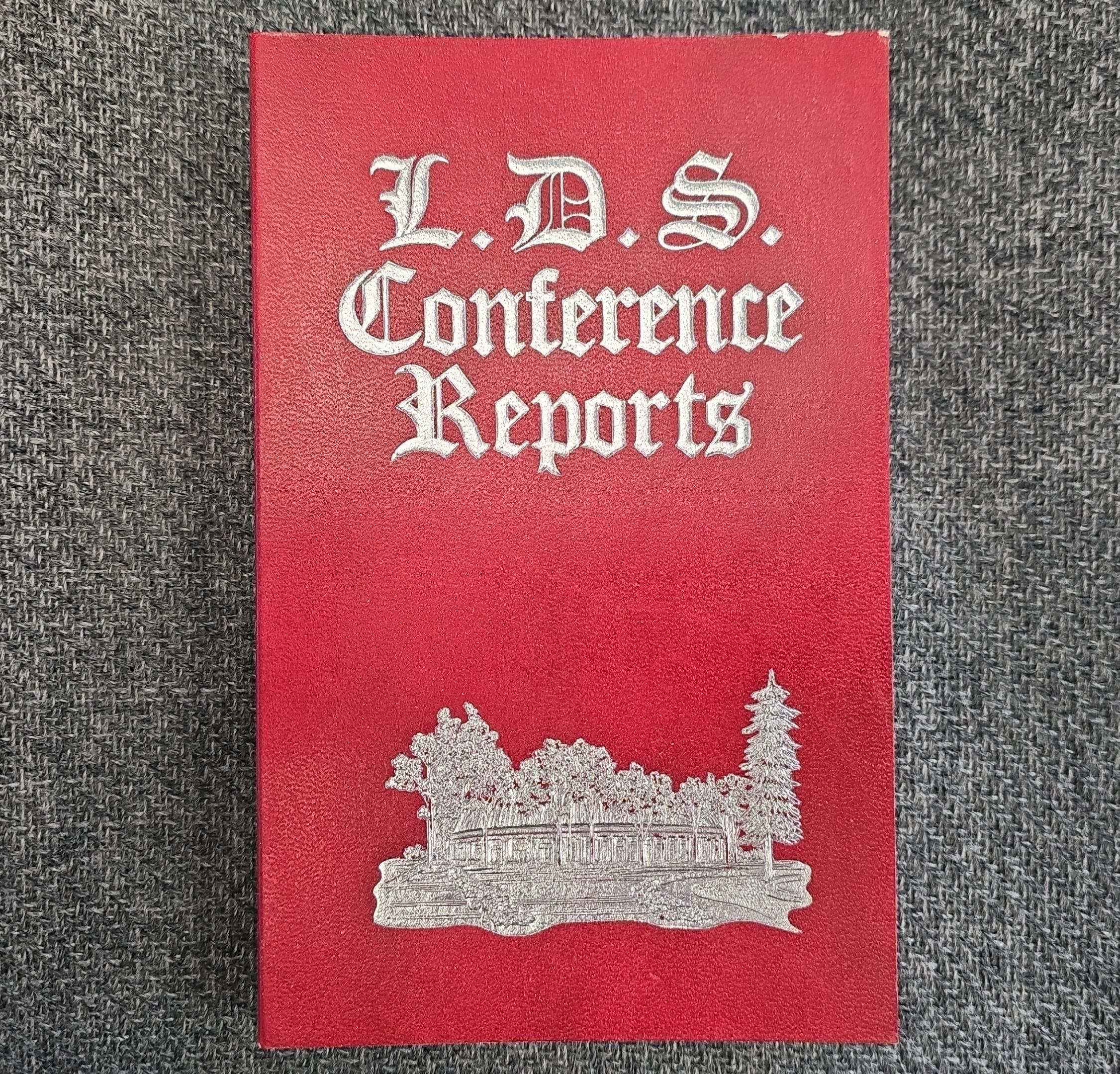 Bendable red vinyl-like binding. A reprint of the 1920 Conference Reports, April and October, into one single volume; good to very good used condition.