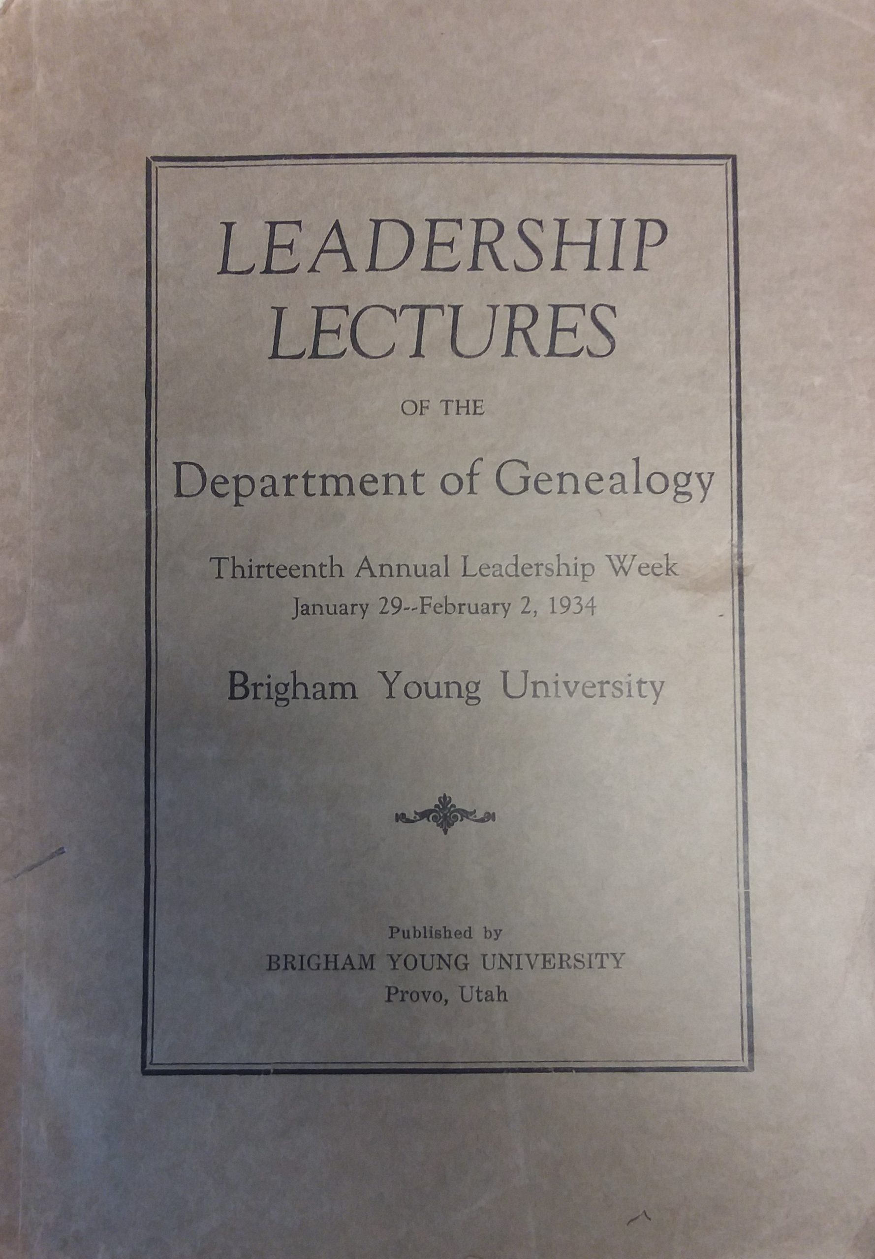 Leadership Lectures of the Department of Genealogy: Thirteenth Annual Leadership Week – Brigham Young University