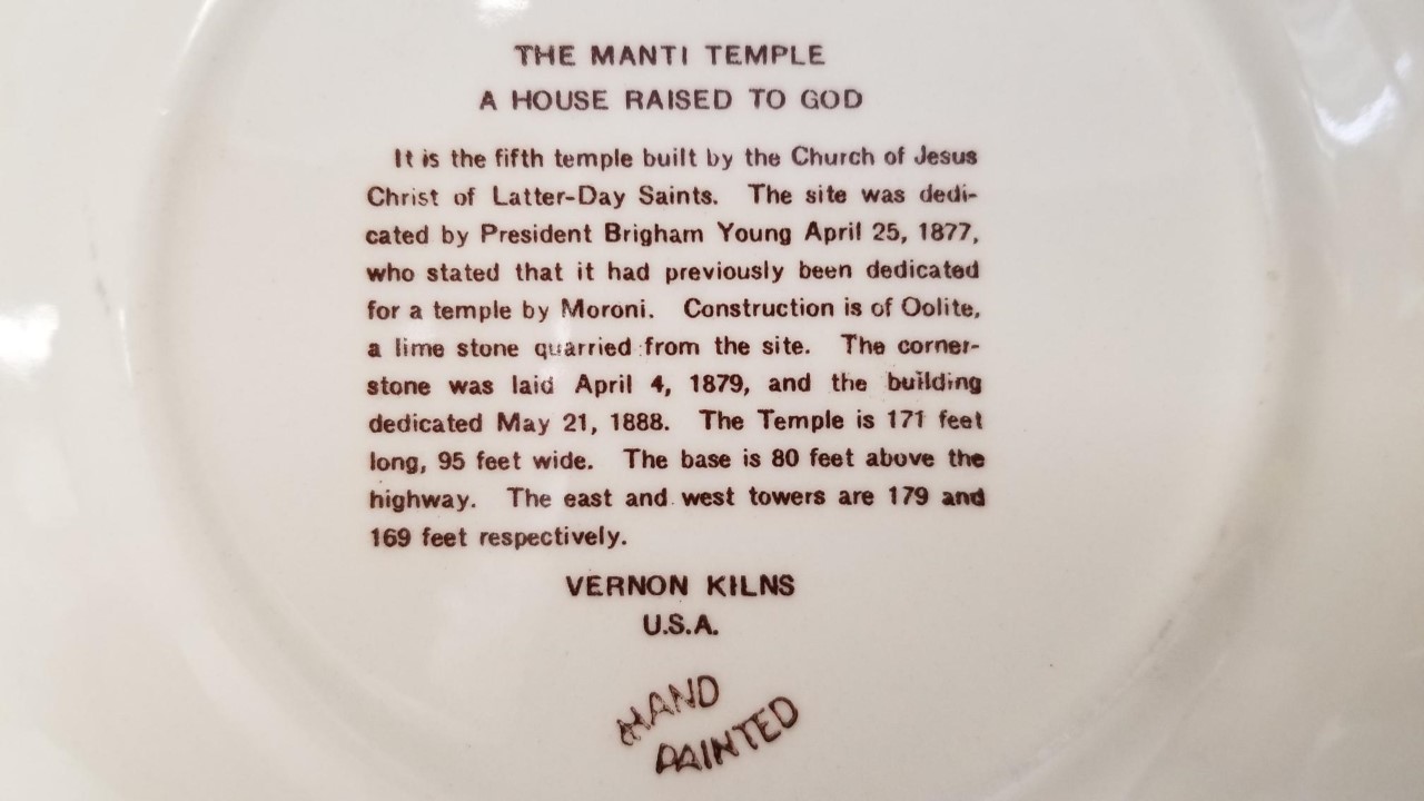 Manti Temple — Collector’s Plate — “A House Raised To God” — Vernon Kilns — Hand Painted