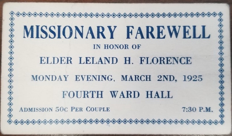 Missionary Farewell Card ~ Elder Leland H. Florence