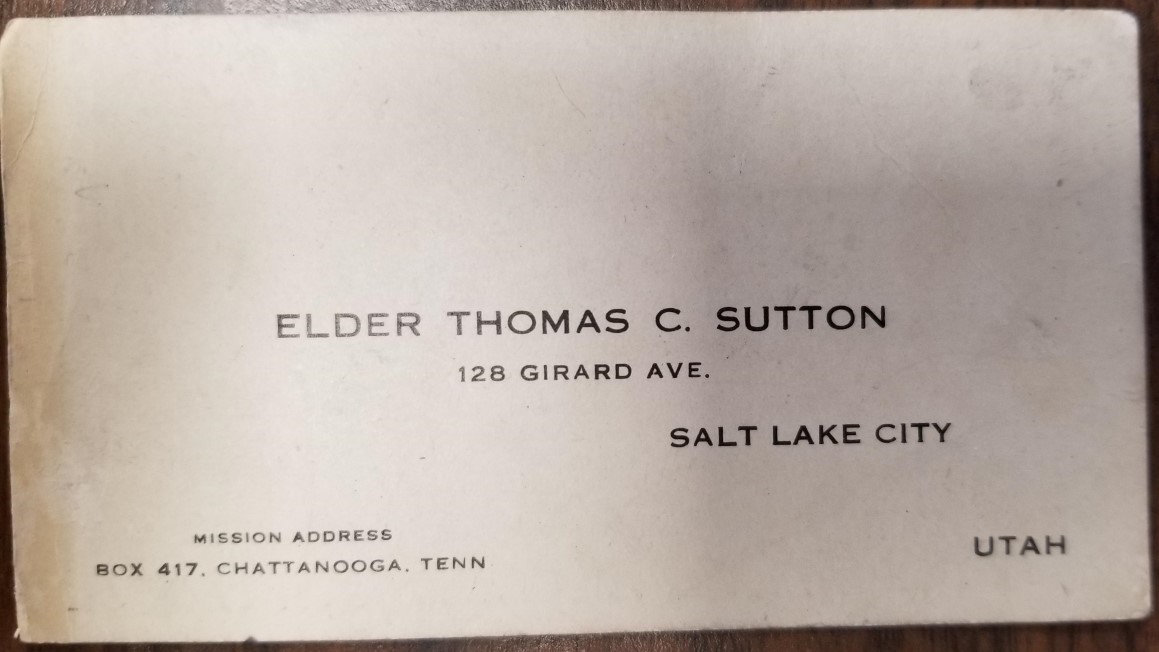 Mormon Missionary’s Business Card — Elder Thomas C. Sutton
