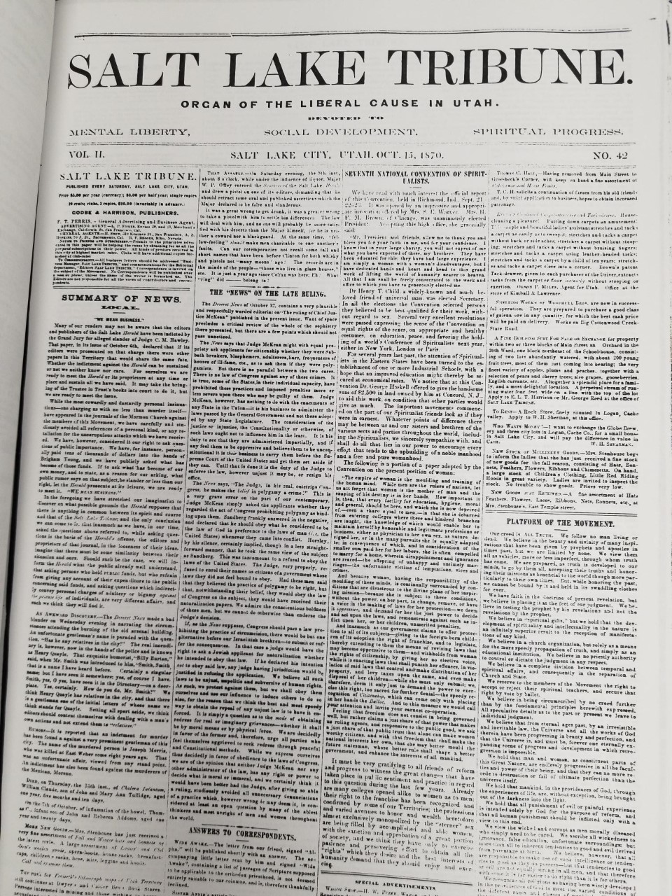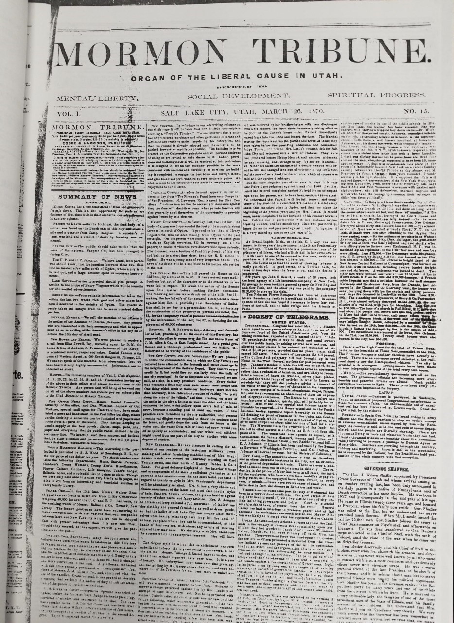 Mormon Tribune / Salt Lake Tribune — Vols. 1-3 1870-1872 March 5, 1870 – Dec. 21, 1872 — Photocopies and Bound in Very Large Sized Hardcover