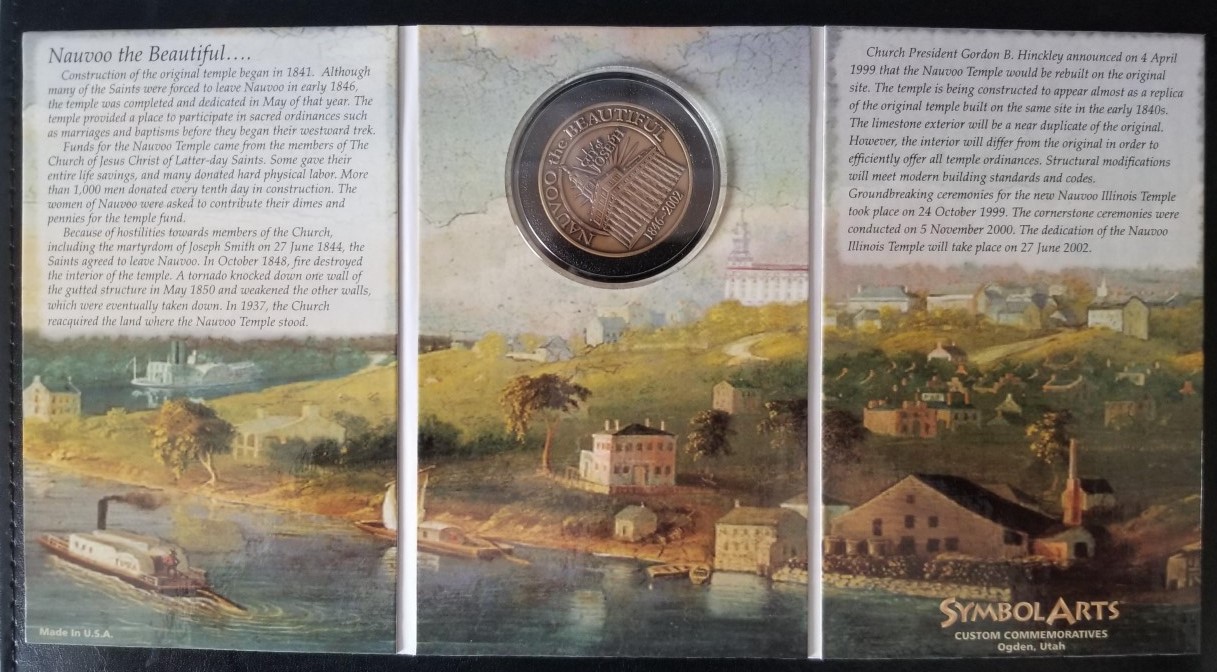 mormon mormons mormonism lds the church of jesus christ of latter-day saints saint nauvoo temple temples keepsake medallion coin coins medal medals emma smith nauvoo sunstone collectible collectable collectibles collectables