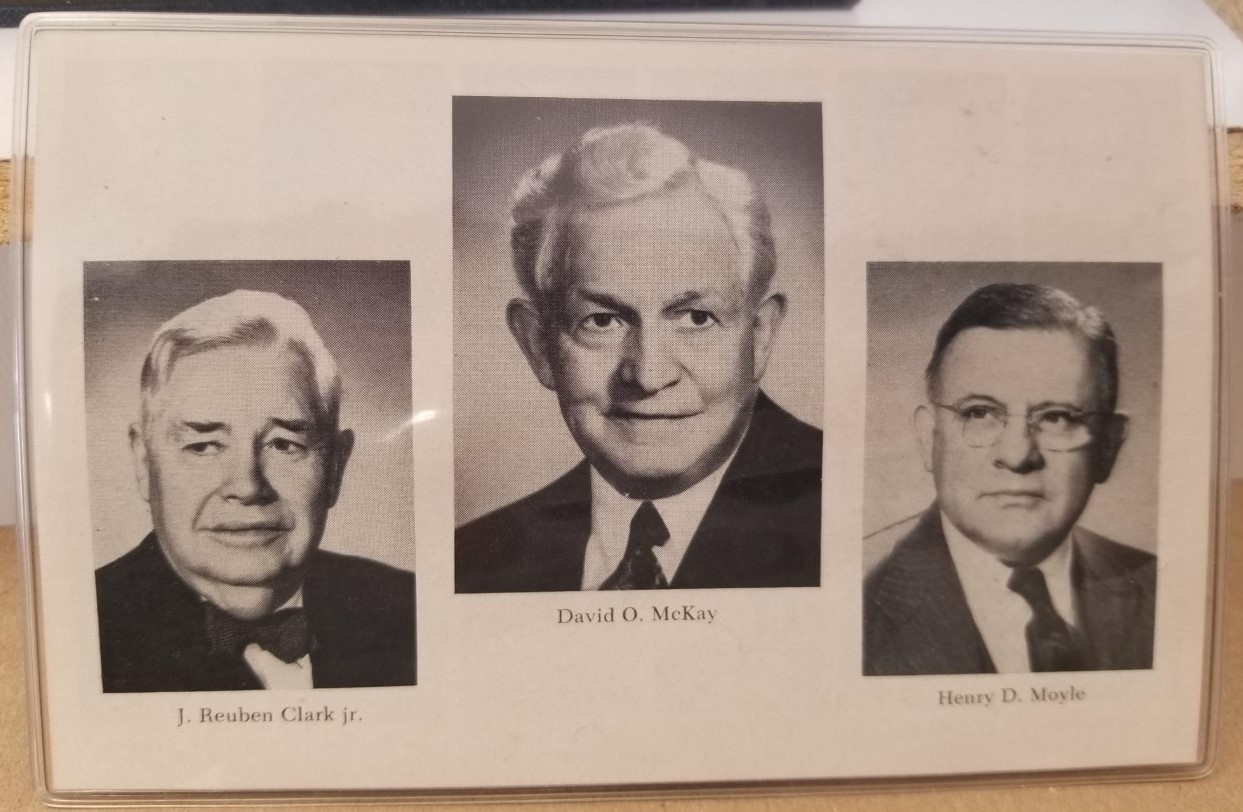 On one side you have the First Presidency: David O. McKay, J. Reuben Clark Jr., and Henry D. Moyle.