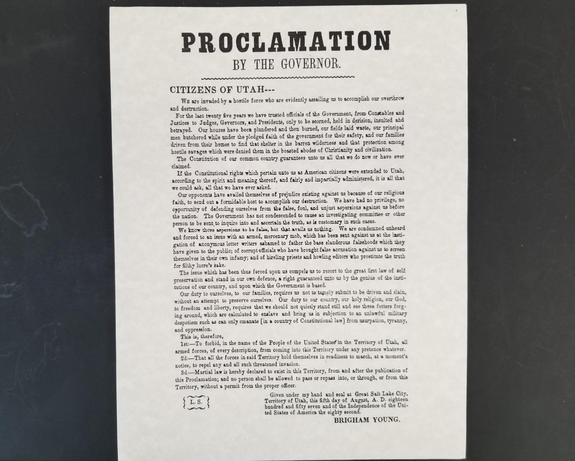 Reprint of the 1857 “Proclamation by the Governor” — Brigham Young — [About the invading Johnston’s Army]