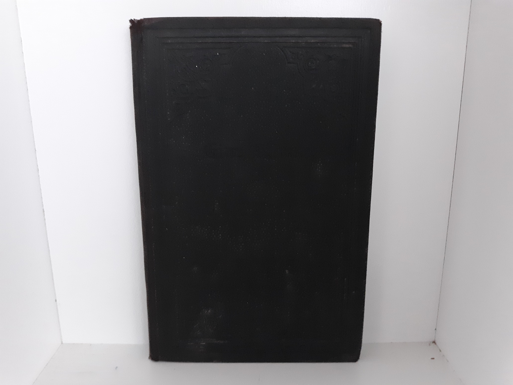 Fair condition, small, thin, black hardcover with no dust jacket. The cover has some fraying, and scuffs. The internal binding is torn. The flyleaf has some writing in pencil. The pages throughout are yellowed. Text throughout is clean, clear, and legible.