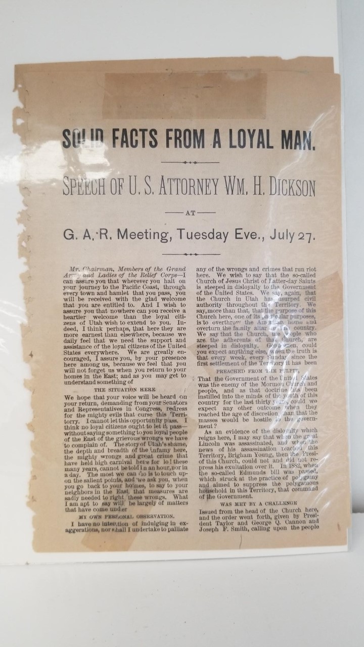 This item defends the Mormon Church in Utah, and the First Presidency, that at the time was John Taylor, George Q. Cannon, etc…