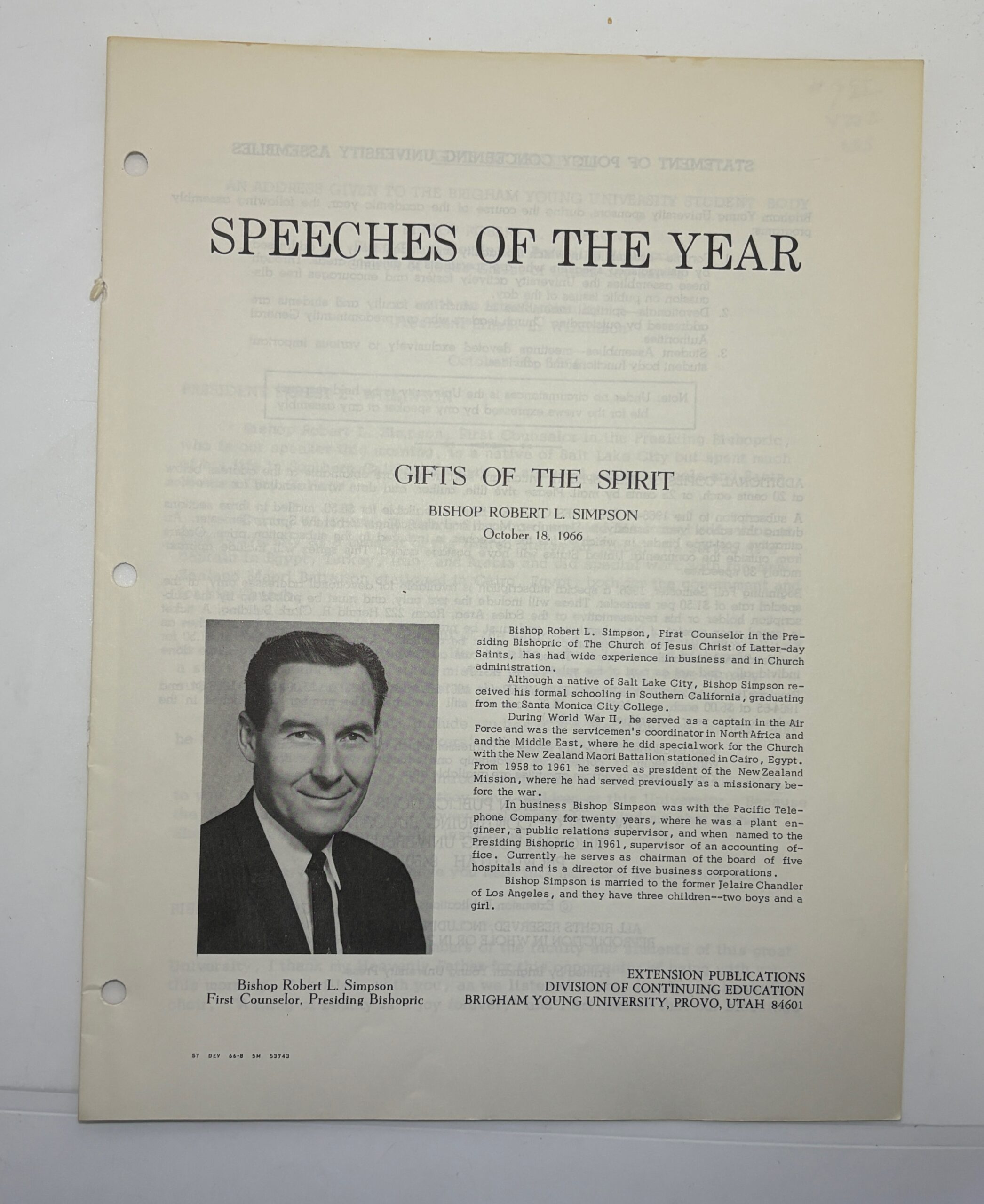 Speeches of The Year – Gifts of The Spirit by Bishop Robert L. Simpson October 18, 1966