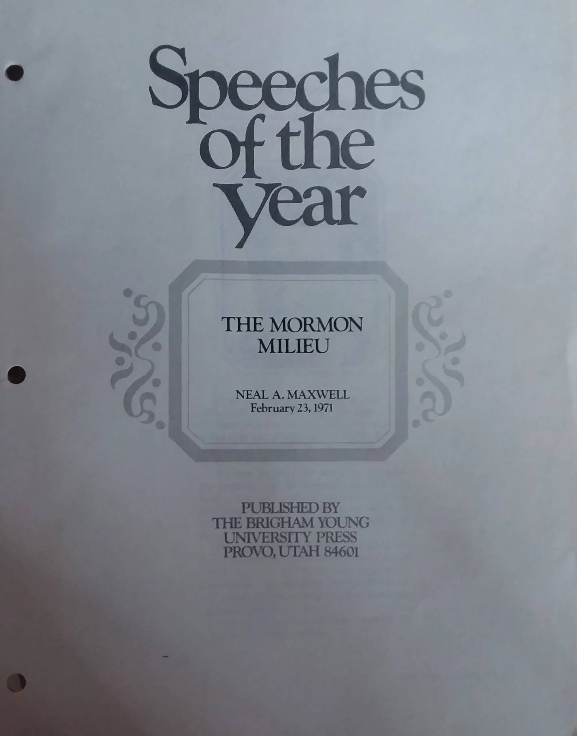 Speeches of the Year: The Mormon Milieu (1971) by Neal A. Maxwell