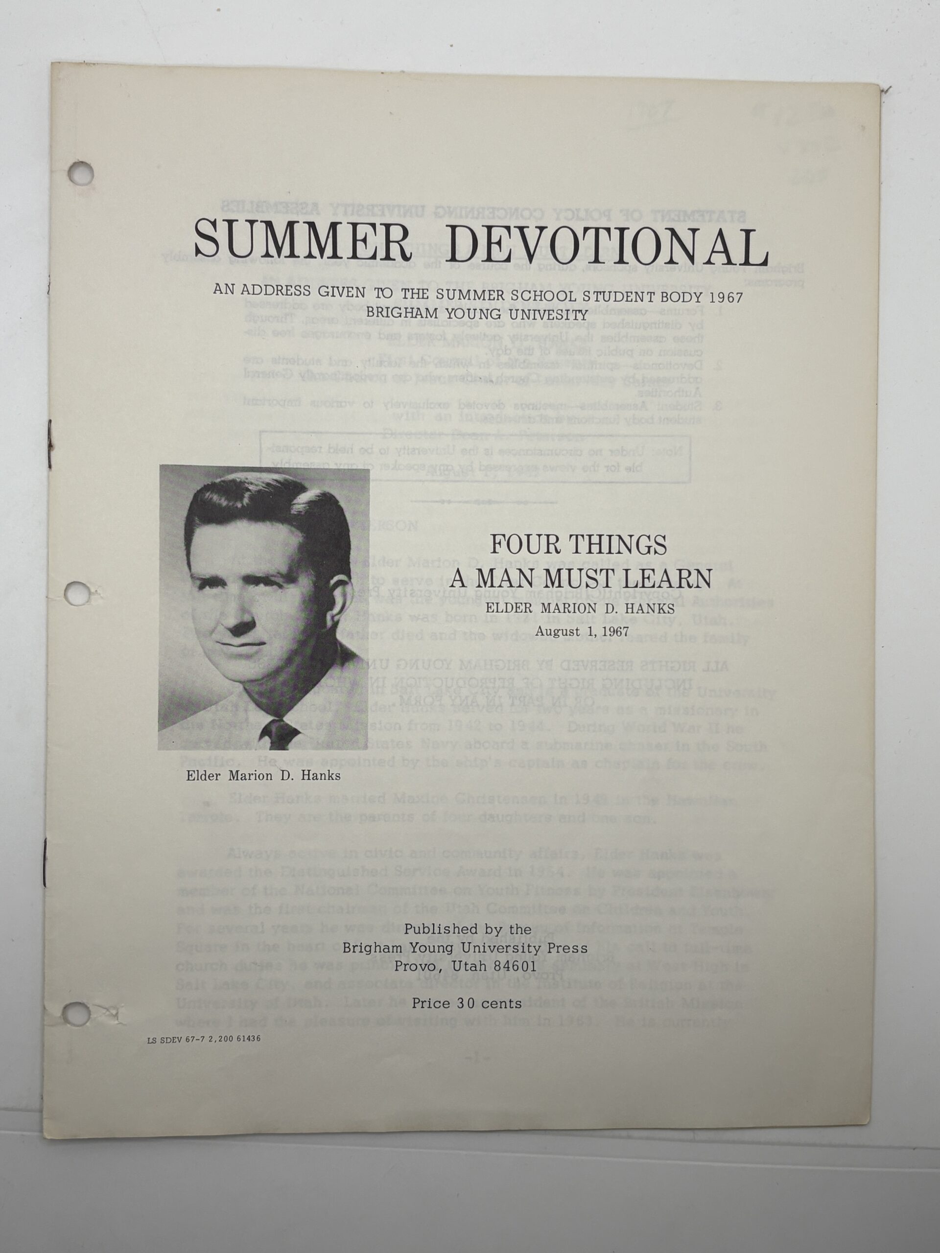 Summer Devotional – Four Things A Man Must Learn by Elder Marion D. Hanks August 1, 1967