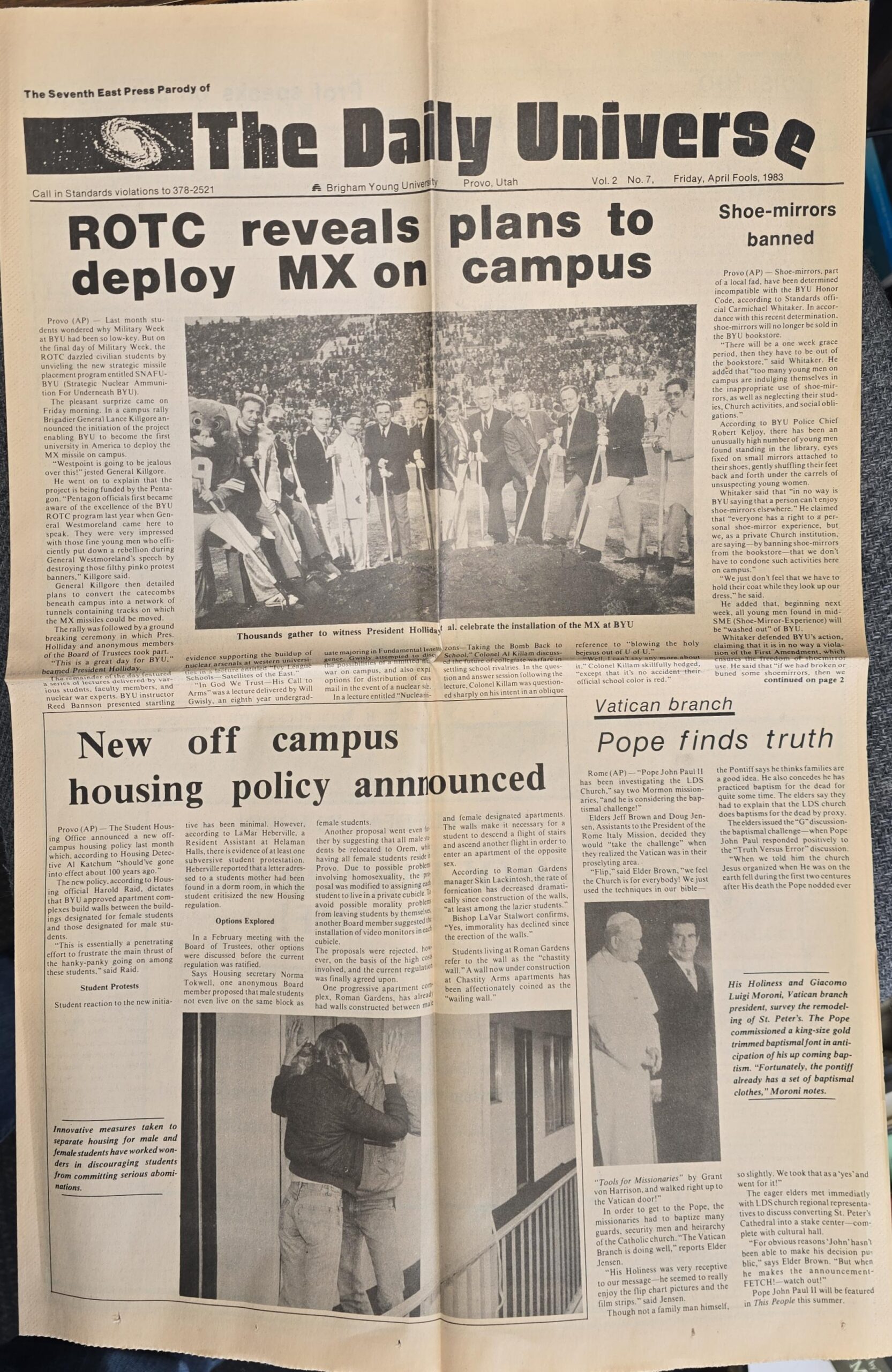 The Daily Universe (The Seventh East Press Parody of BYU’s Newspaper) — April Fools Day Edition for 1983