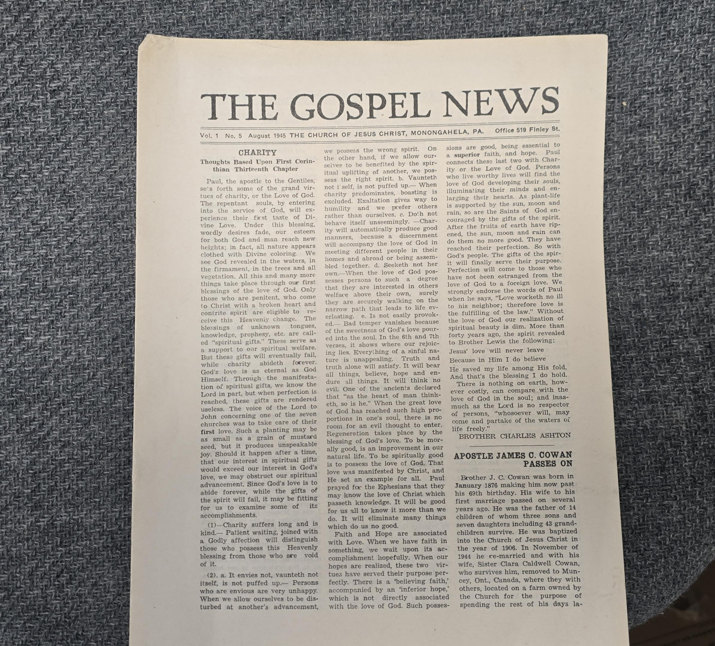 This is one issue of The Gospel News, put out by Cadman of the Church of Jesus Christ, Monongahela, Pa.