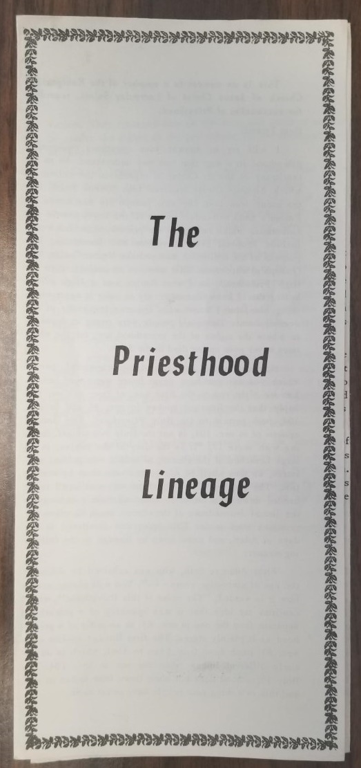 The Priesthood Lineage — Rupert J. Fletcher (Cutlerite) — Pamphlet — In Response to a Question by an RLDS Person