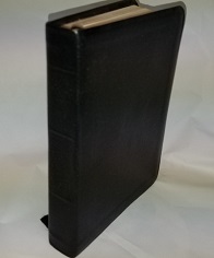 Small size black leather edition; gold leafed page edges; small black ribbon bookmark. No title on spine or cover. Very good condition with clean text throughout.