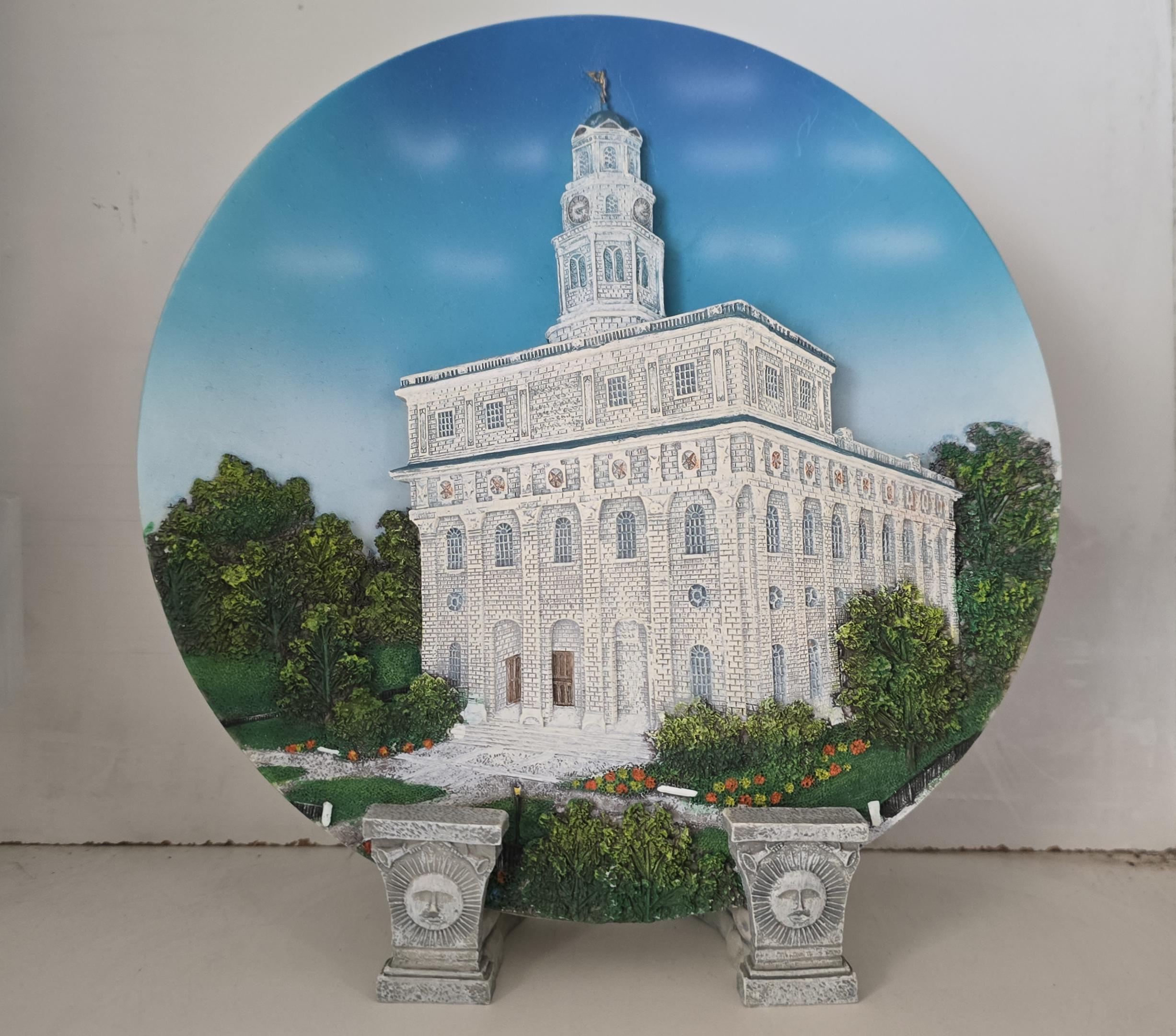 This plate sits on a little stand that has two small sunstones on it. The plate appears to be made out of some kind of plaster. No author. Nothing on the back except a little metal thing so you can hang it on a nail if you’d like. But it comes with a cute stand.
