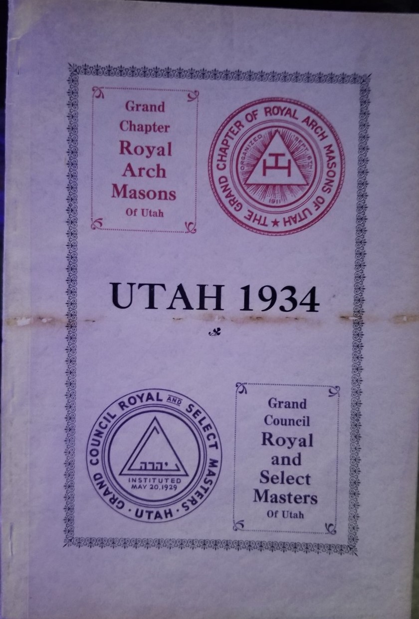 Softcover; as pictured; 92 pages. In the back is found Proceedings of the Most Illustrious Grand Council of Royal and Select Masters Of Utah. Fifth Annual Assembly, June 11, 1934. A. DEP. 2934, Masonic Temple, Salt Lake City, Utah, 24 pages.