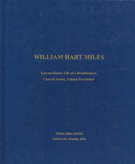 William Hart Miles – Extraordinary Life of a Brushmaker, Church leader, Valued Forefather – Melvin Miles DuPaix. Edition III, October 2016. 184 pages. Large size blue hardbound. Family History.