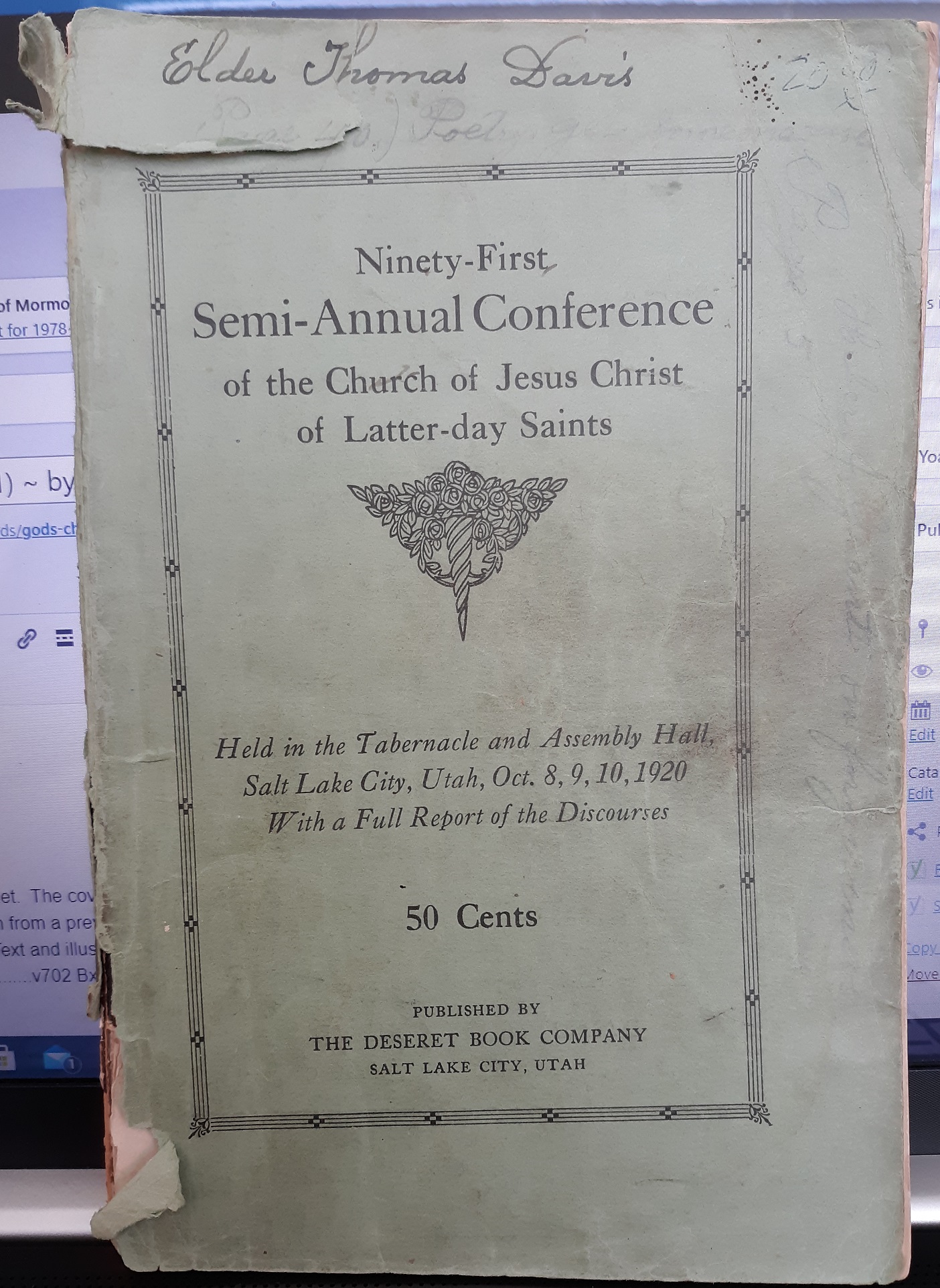 Ninety-First Semi-Annual Conference of the Church of Jesus Christ of Latter-day Saints: Oct. 8, 9, 10, 1920