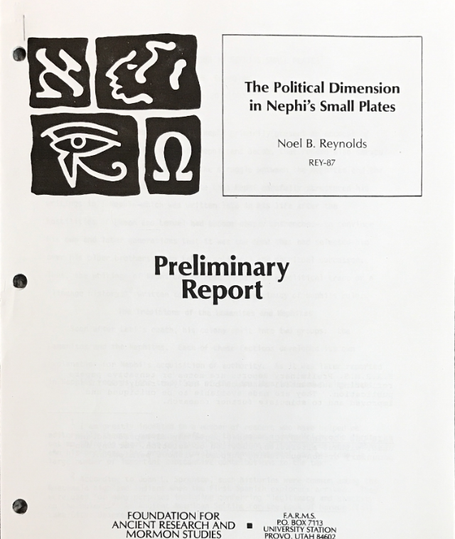 / Noel B. Reynolds ~ The Political Dimension in Nephi’s Small Plates ~ REY-87