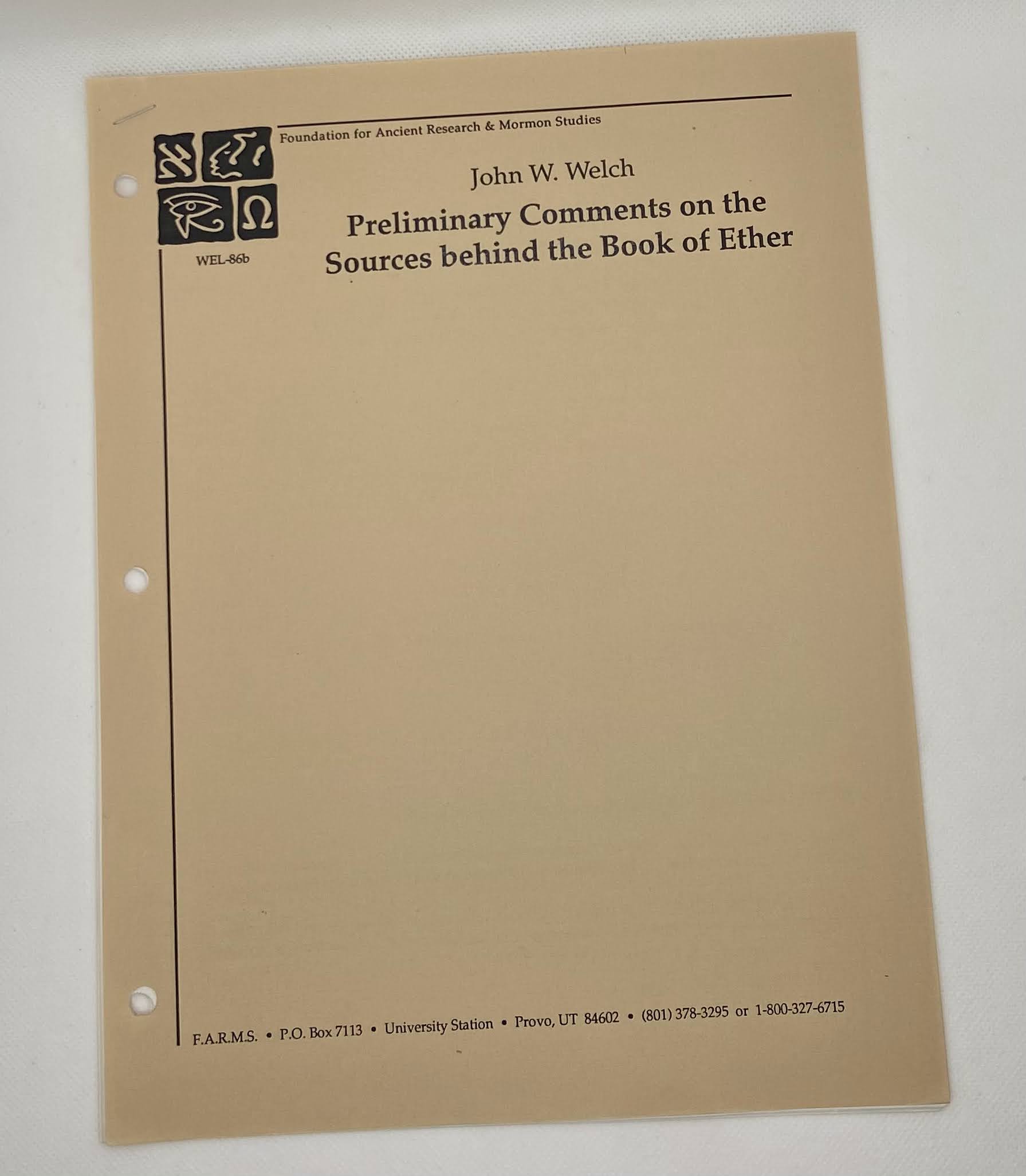 Preliminary Comments On The Sources Behind The Book Of Ether (1986) By: John W. Welch