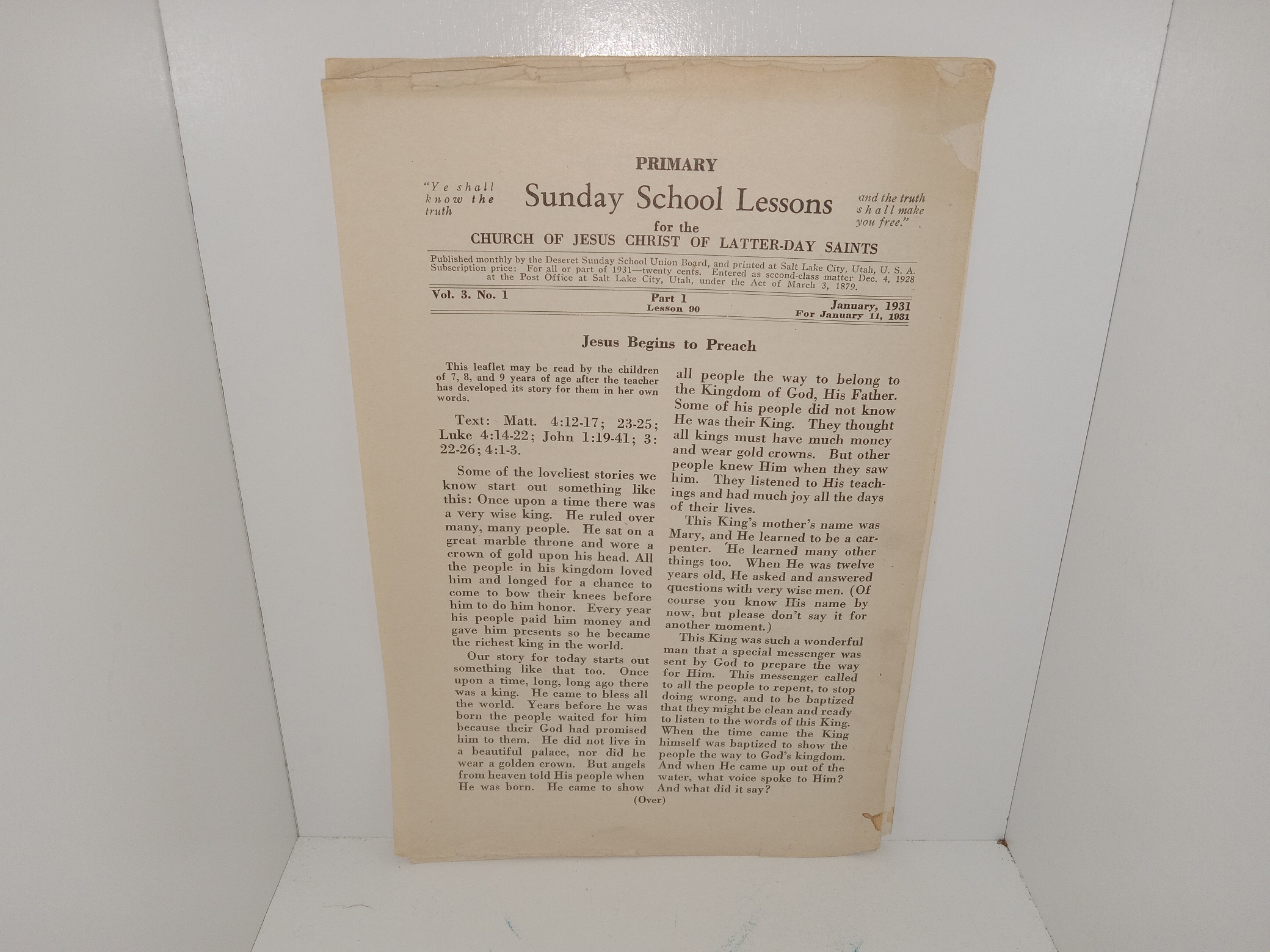 Primary Sunday School Lessons for the Church of Jesus Christ of Latter-day Saints: Vol. 3, No. 1, January, 1931 Parts 1-3