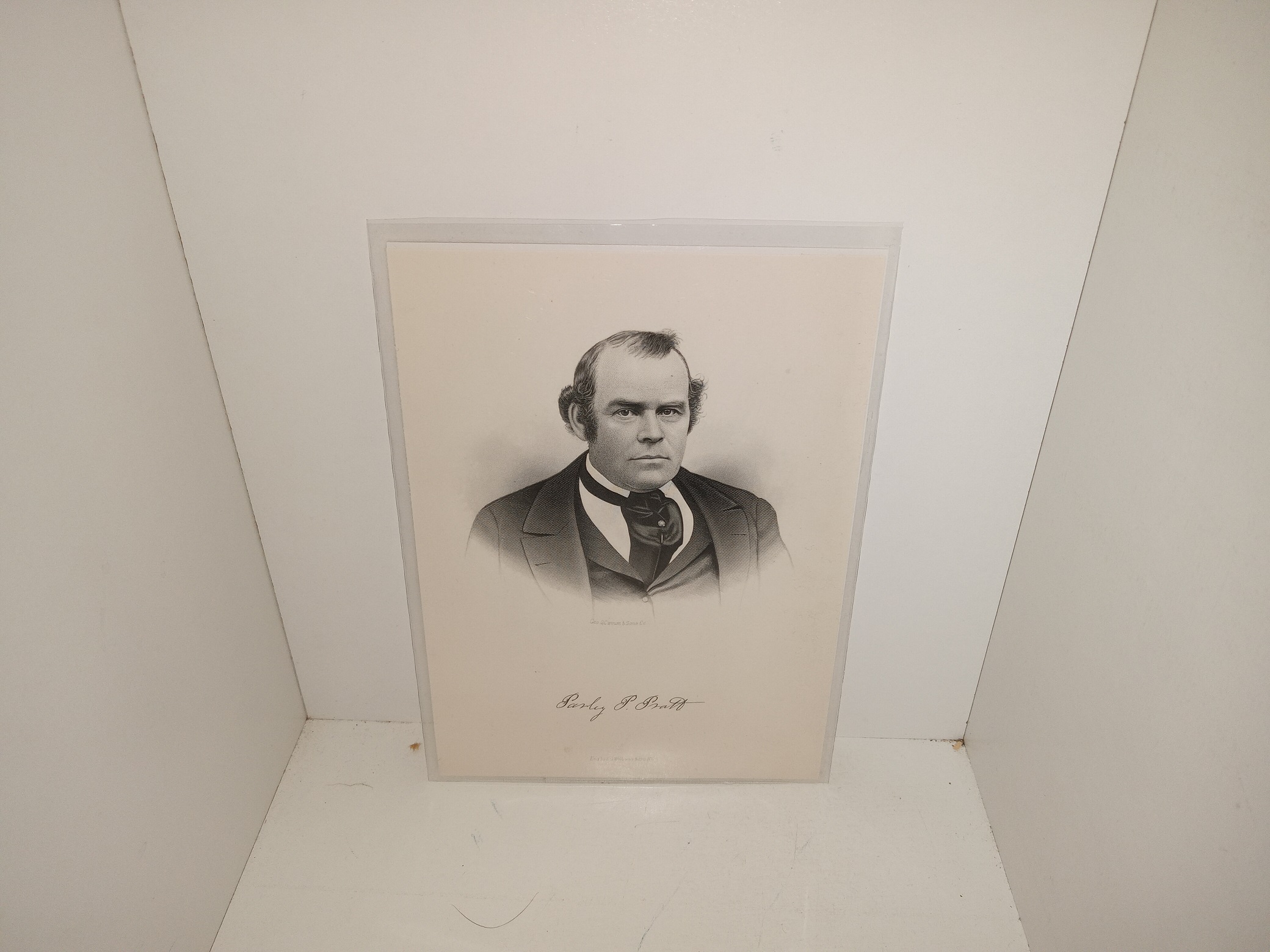 Fair-good condition, print on a card. The card has some small stains, but otherwise, the print is in good shape.