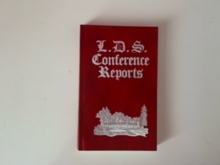 This is a red conference report and is in great condition. There is some small scuffs on the corners. The spine is slightly creased. It is a reprint of the 1908 report.