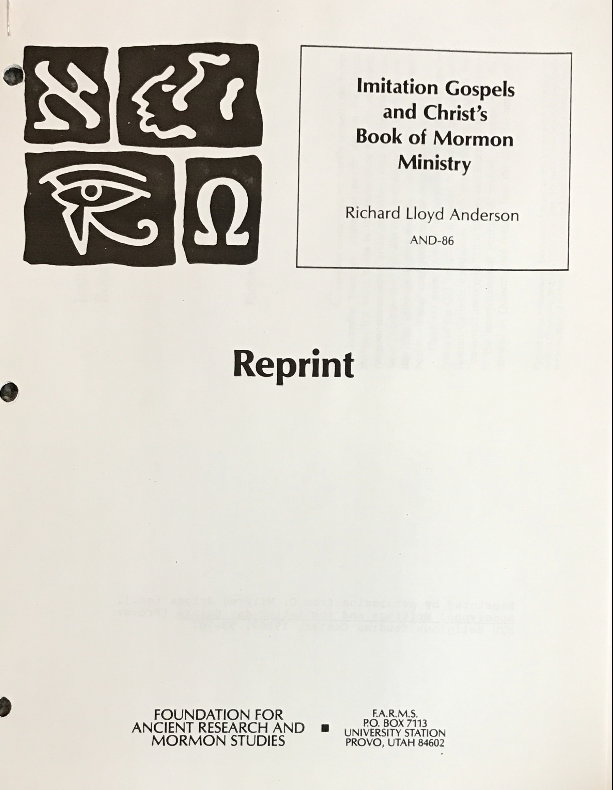 Richard Lloyd Anderson ~ Imitation Gospels and Christ’s Book of Mormon Ministry ~ AND-86