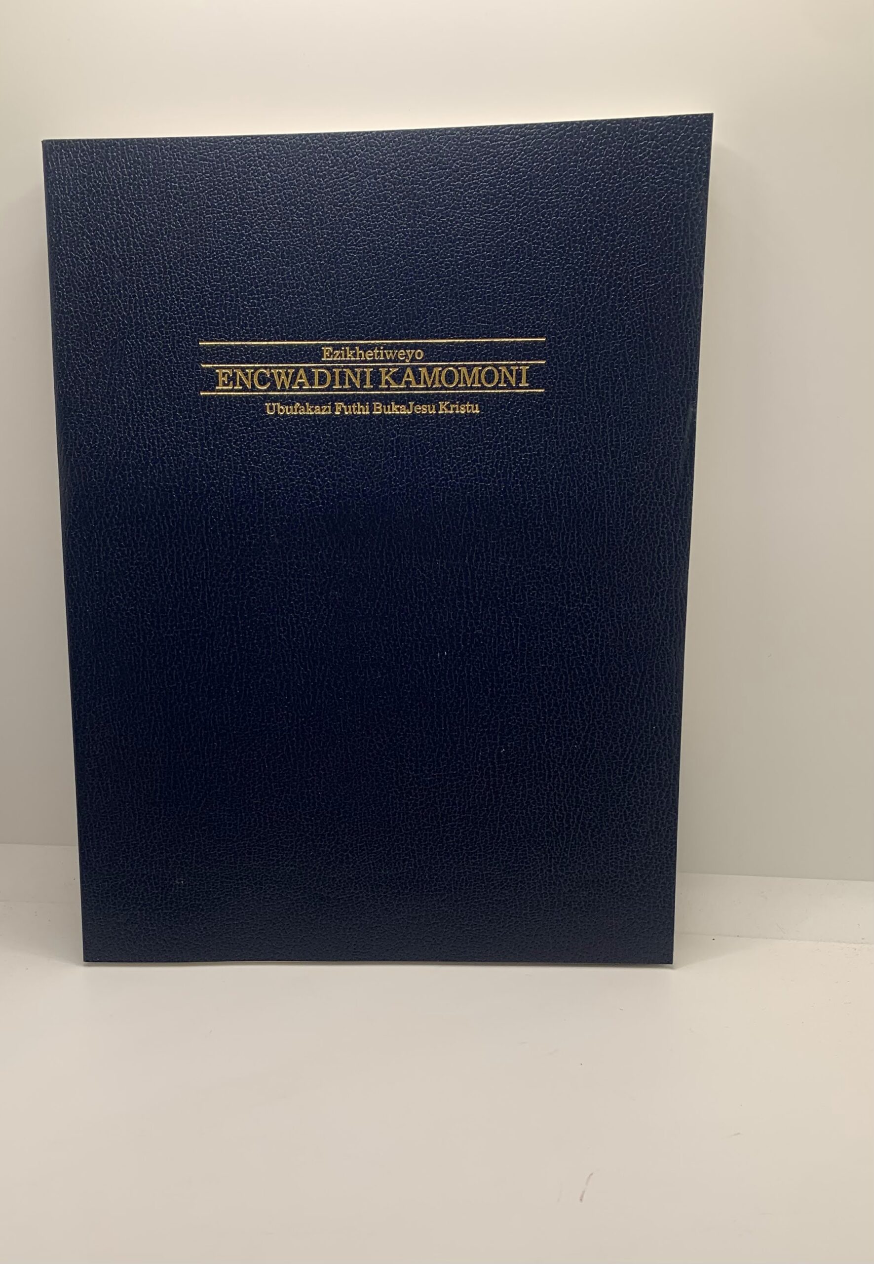 Good condition, large, thin, dark blue softcover. The cover has some slightly creased and fraying corners. The first page has writing in pencil. Text and illustrations throughout are clean, clear, and legible.