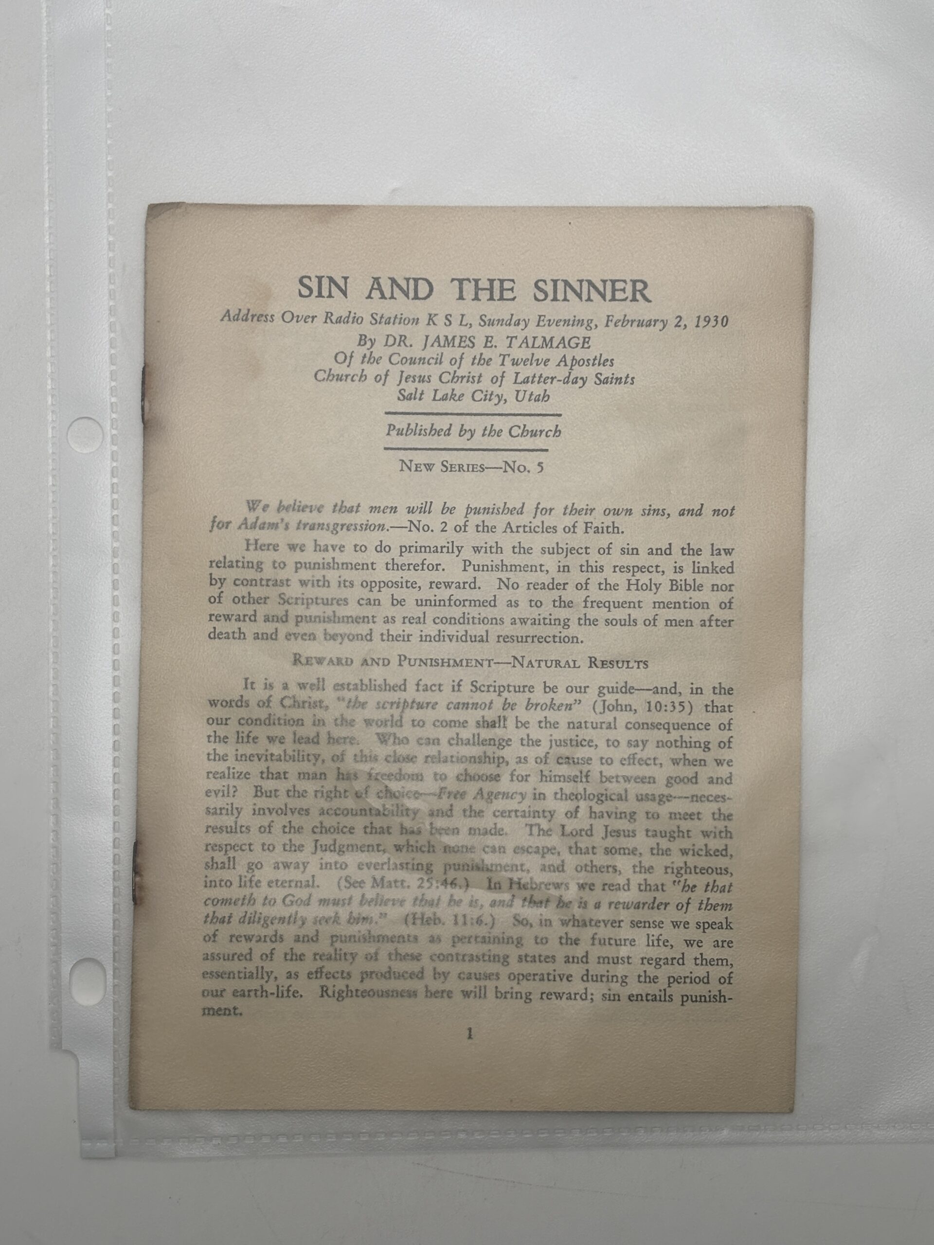 Sin and the Sinner (pamphlet) by James E. Talmage (1930)