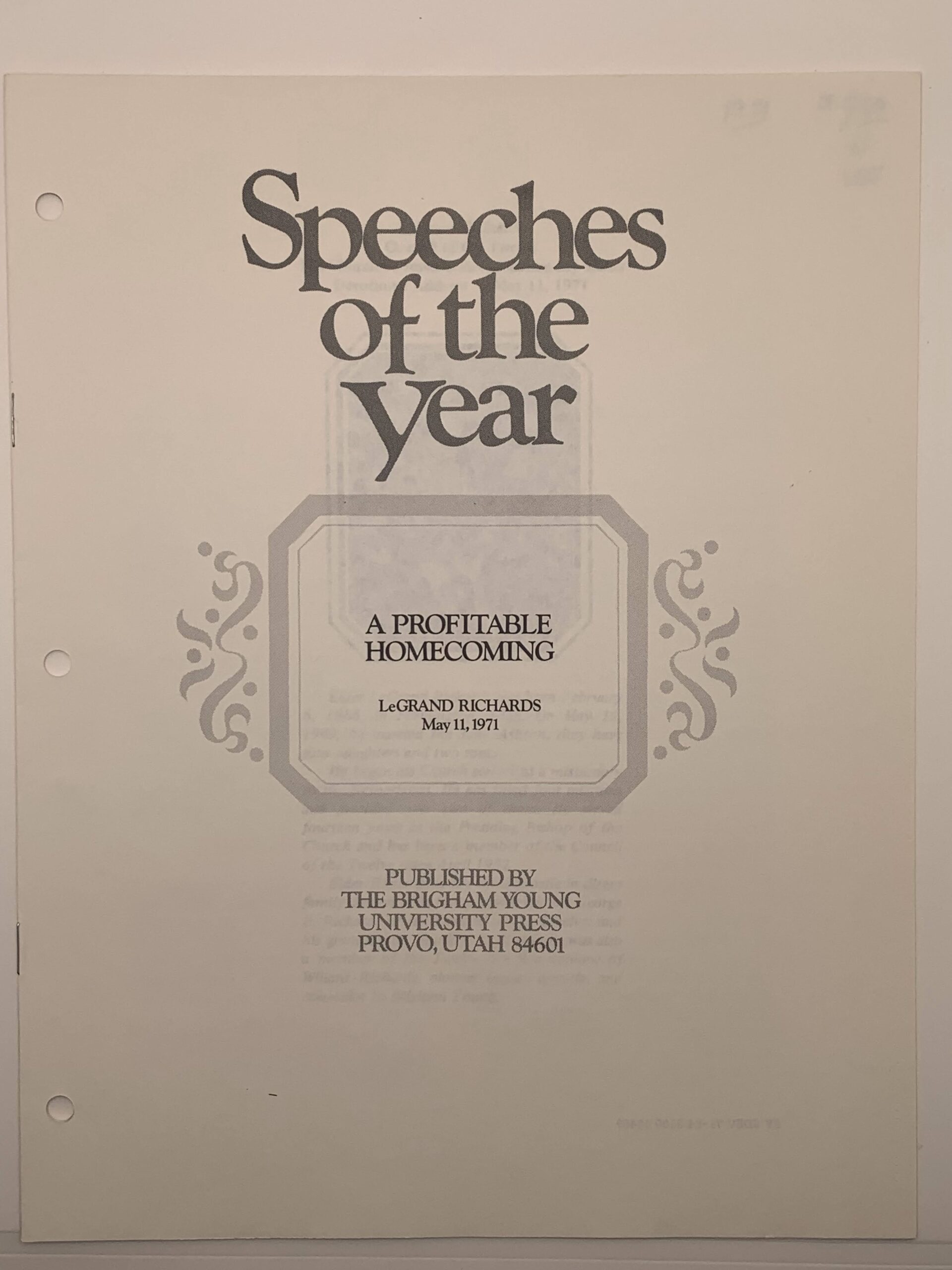 Speeches of the Year: A Profitable Homecoming (1971) by LeGrand Richards