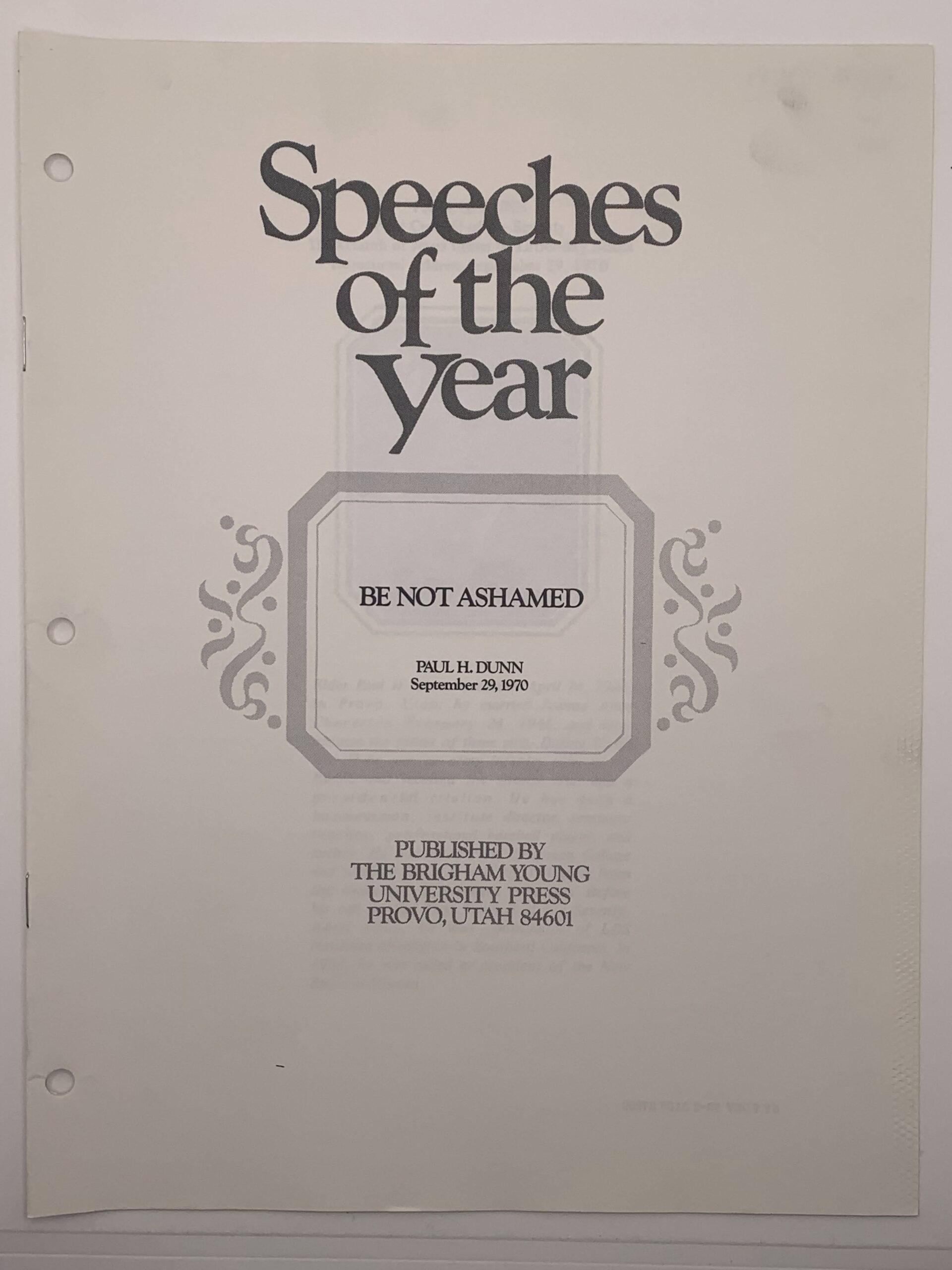Speeches of the Year: Be Not Ashamed (1970) by Paul H. Dunn