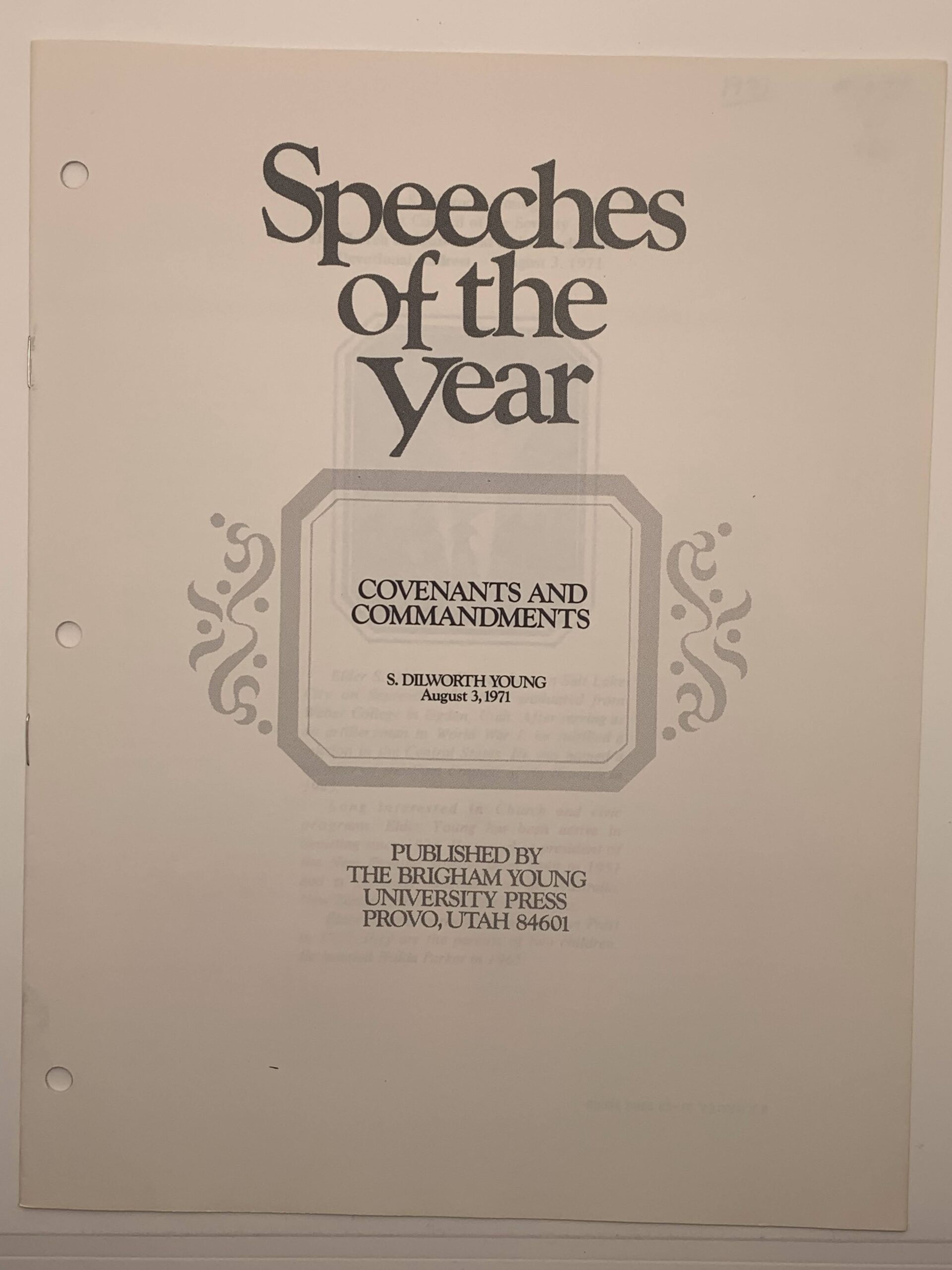 Speeches of the Year: Covenants and Commandments (1971) by S. Dilworth Young.