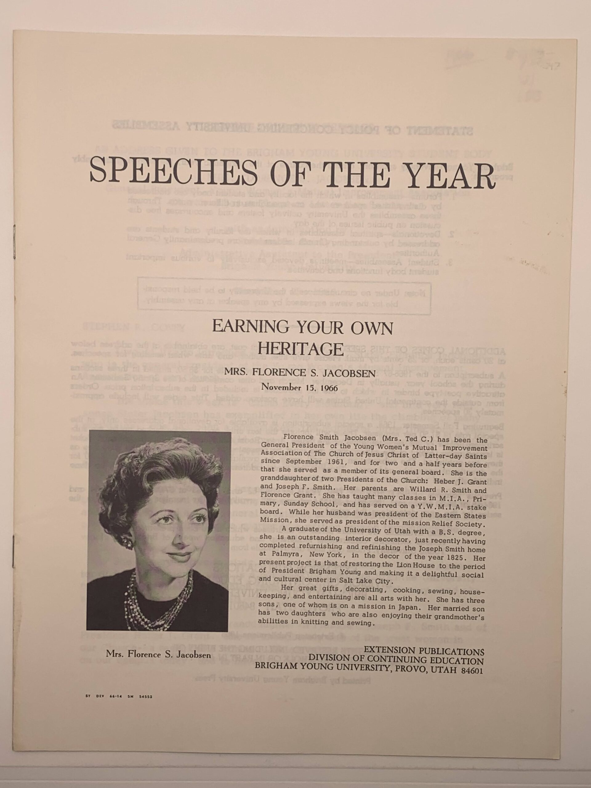 Speeches of the Year: Earning Your Own Heritage (1966) by Florence S. Jacobsen