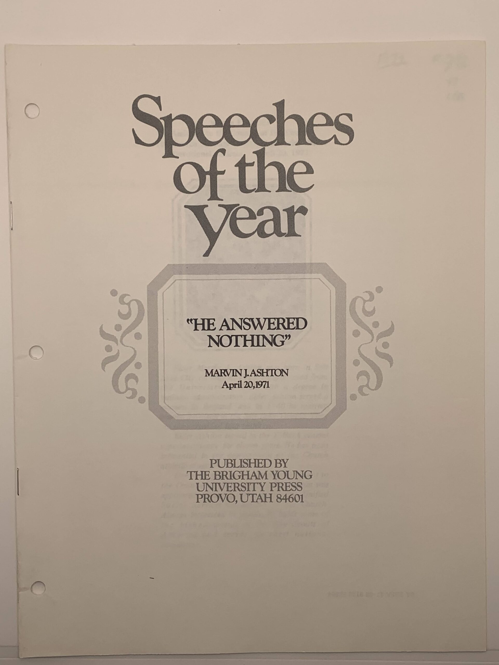 Speeches of the Year: He Answered Nothing (1971) by Marvin J. Ashton