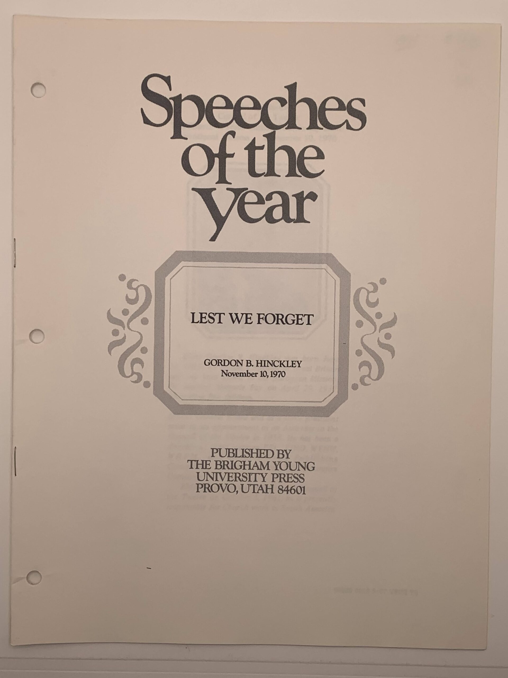 Speeches of the Year: Lest We Forget (1970) by Gordon B. Hinckley