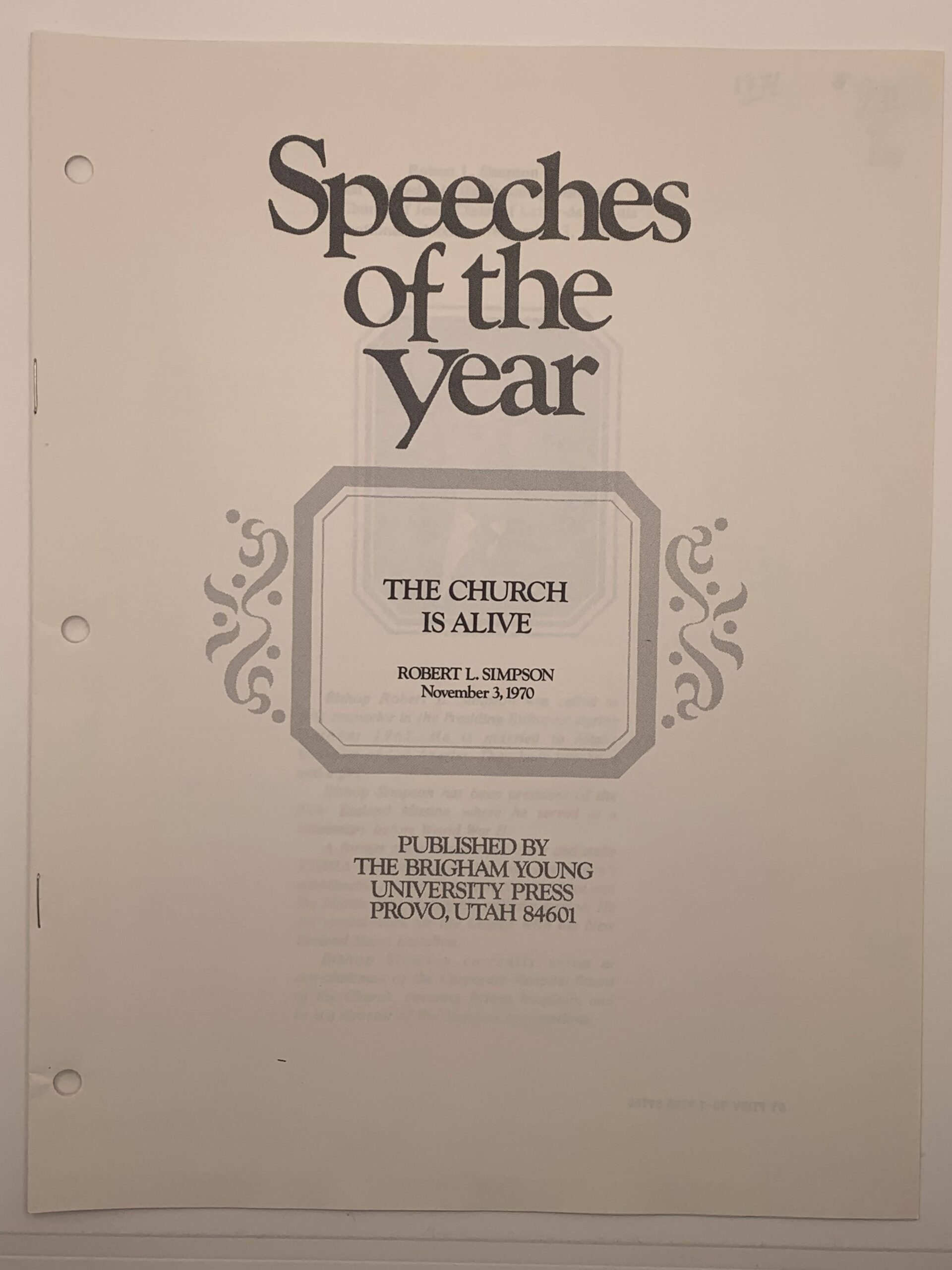 Speeches of the Year: The Church is Alive (1970) by Robert Simpson