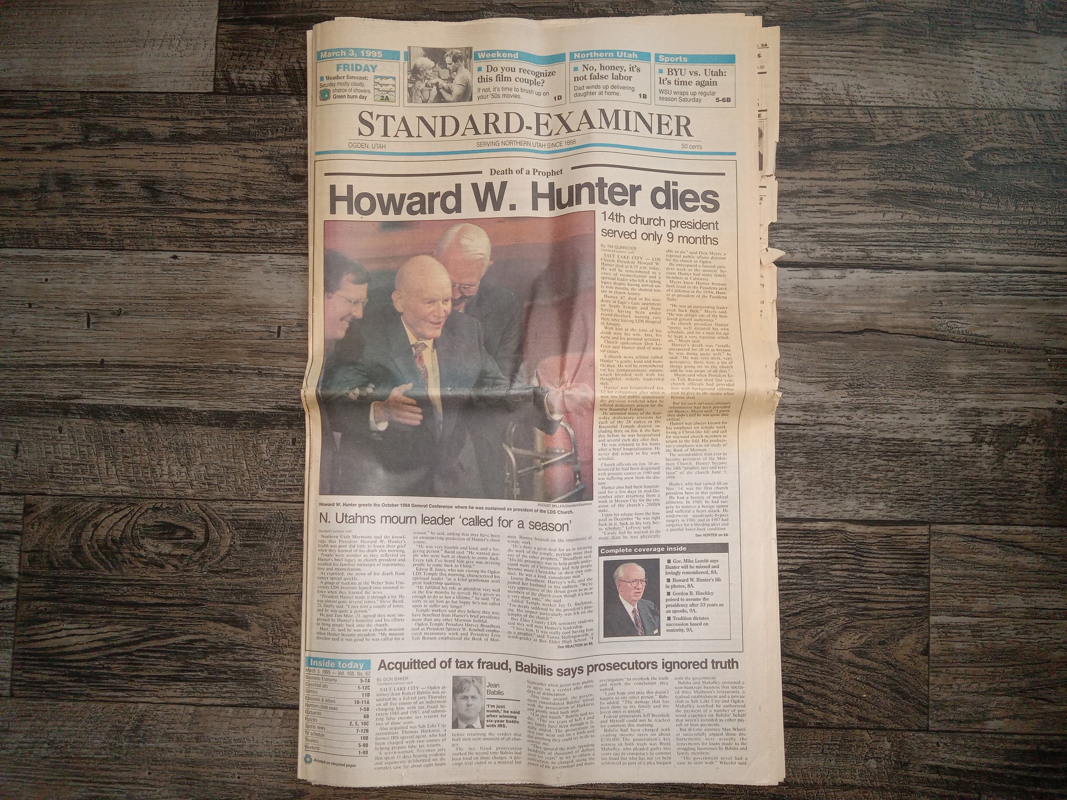 Standard-Examiner: Friday, March 3, 1995: Featuring the Death of President Howard W. Hunter
