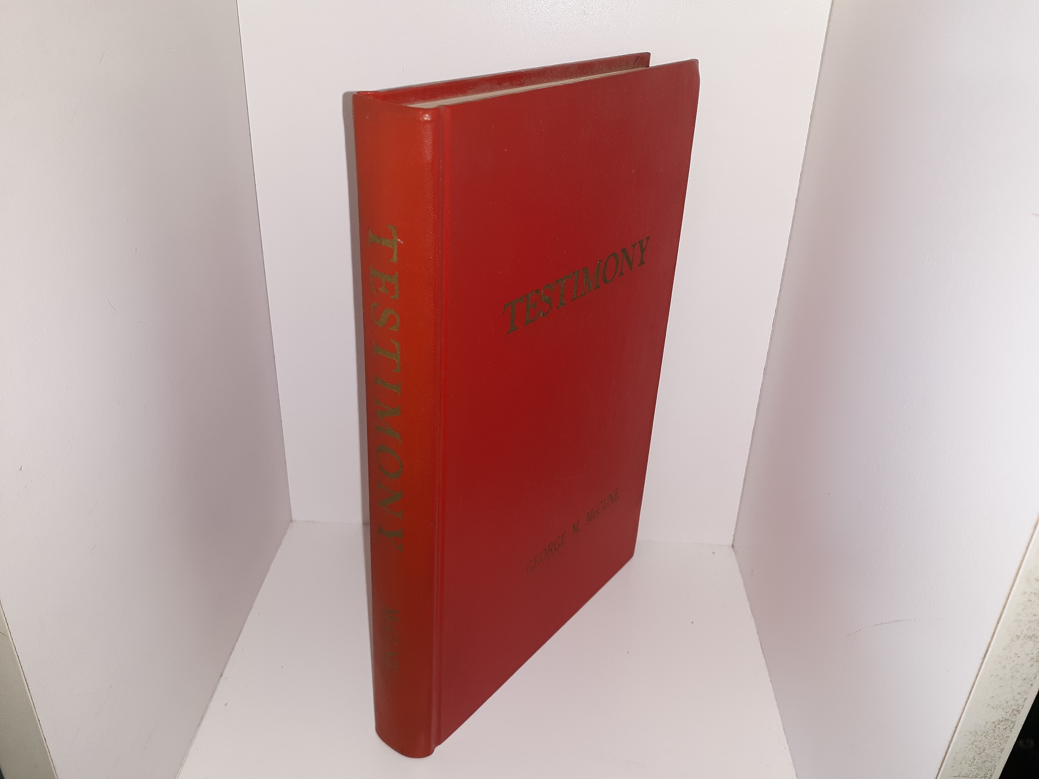 Fair-good condition, red hardcover with no dust jacket. The book has some very slight water damage. The cover has scuffing, some fading, and slightly bent corners. The inside covers and flyleaves have stains from the adhesive used to bind them.
