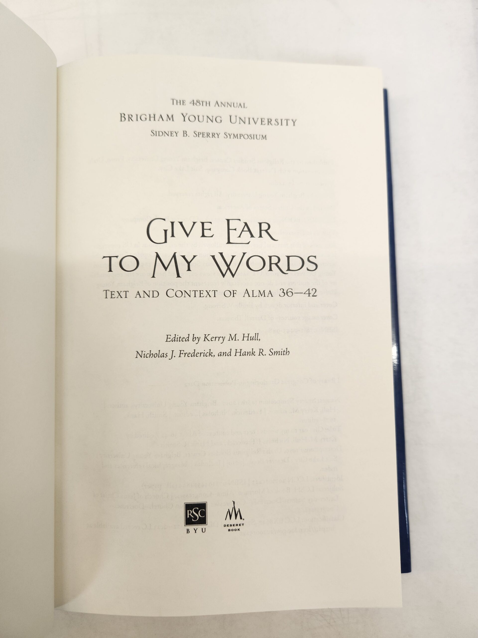 The 48th Annual Brigham Young University Sidney B. Sperry Symposium:: Give Ear To My Words, Text and Context of Alma 36-42 (Hardcover w/ Dust Jacket)
