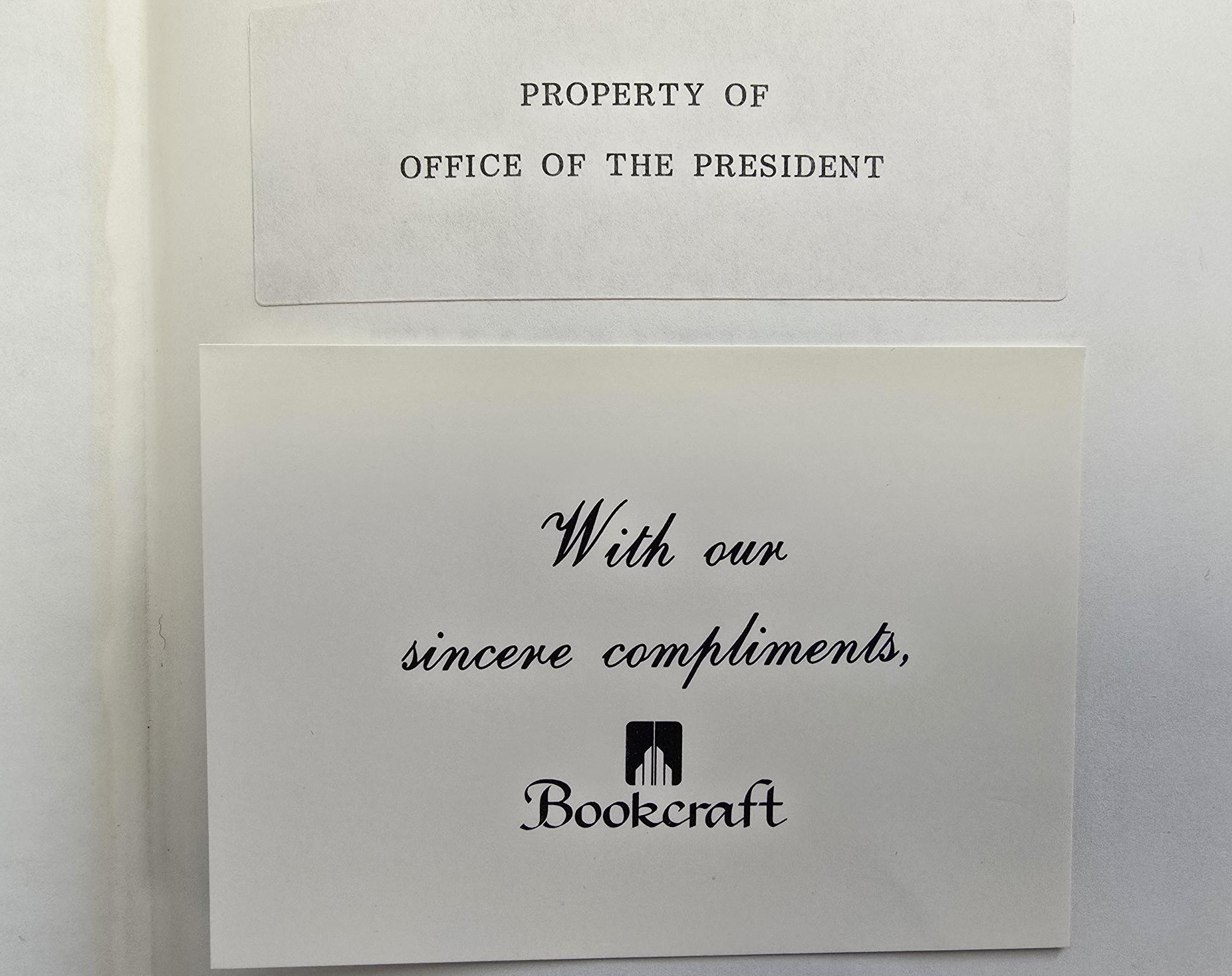 The book came from Pres. Gordon B. Hinckley’s estate, but does not have his name in it anywhere. It simply has a little gift card from Bookcraft (the publisher) and a sticker which states it is owned by the “Office of the President.”