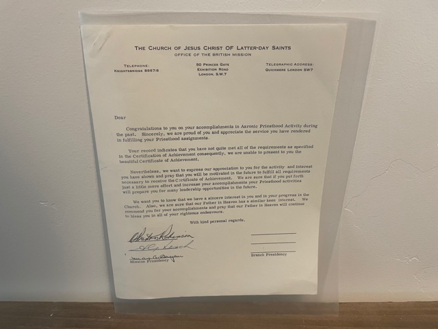/ The Church of Jesus Christ of Latter-day Saints Office of the British Mission Letter