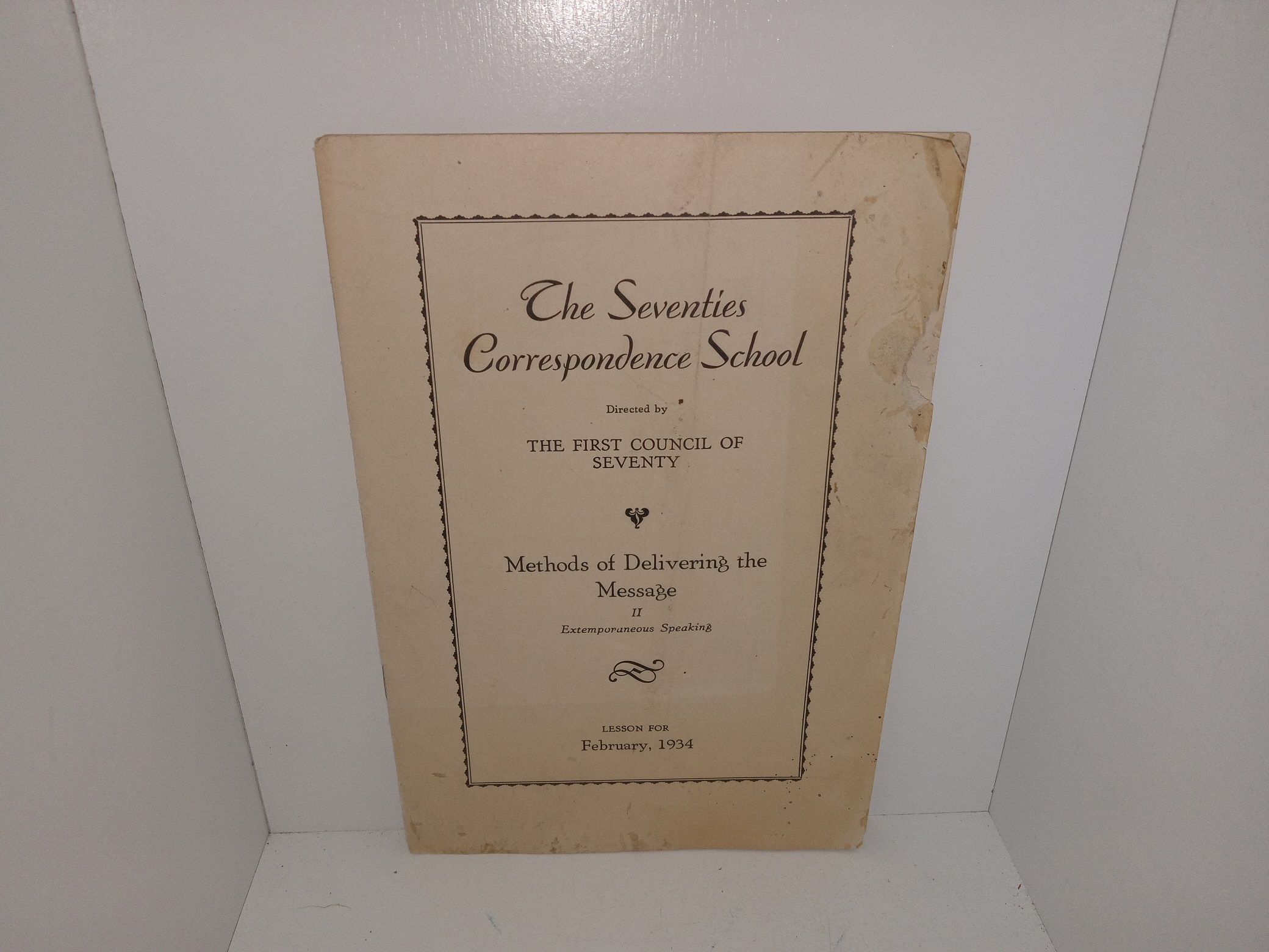 The Seventies Correspondence School Directed by The First Council of Seventy: methods of Delivering the Message: II Extemporaneous Speaking: Lessno for February, 1934