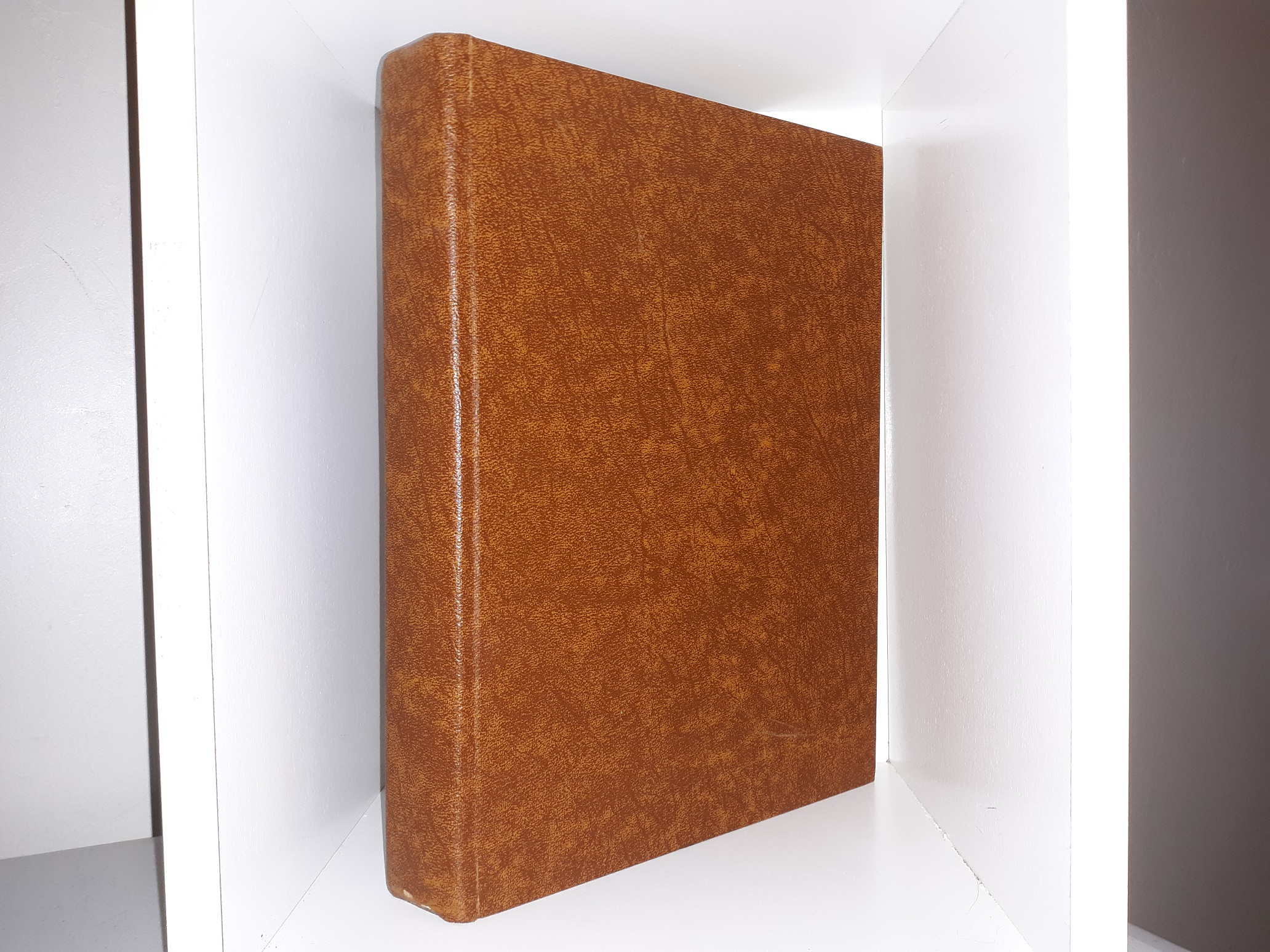 Good condition, large, brown hardcover with no dust jacket. The cover has some scratches, and minor scuffs. The flyleaf has a sticker, and some writing in pencil. Text and illustrations throughout are clean, clear, and legible.