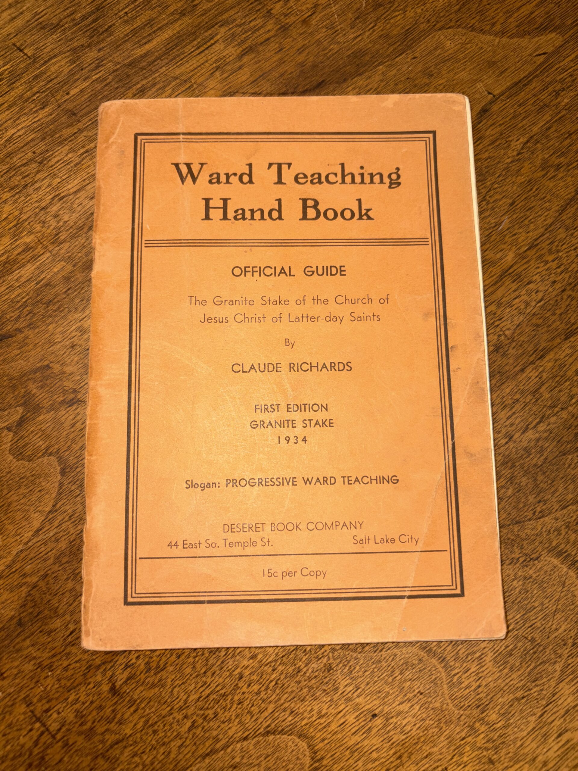 Ward Teaching Hand Book Official Guide – The Granite Stake of the Church of Jesus Christ of Latter-Day Saints by Claude Richards – First Edition Granite Stake 1934